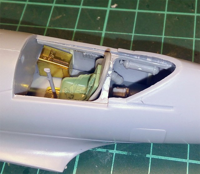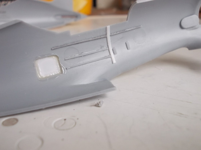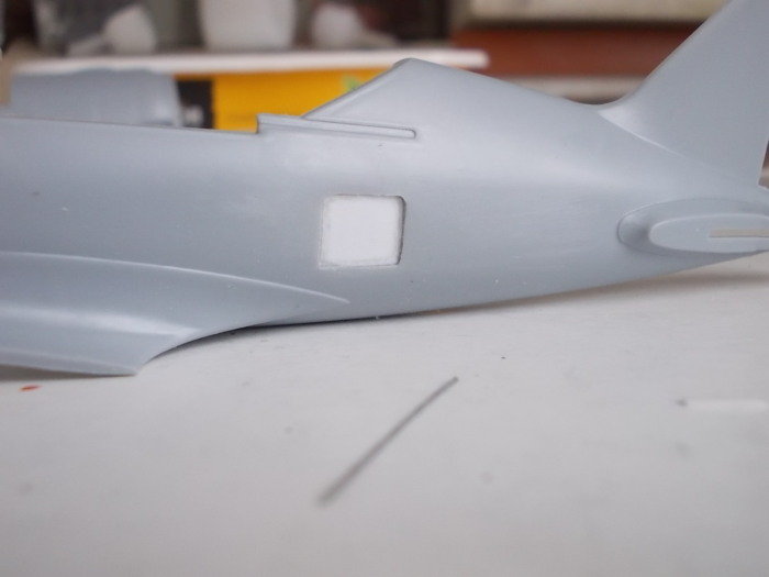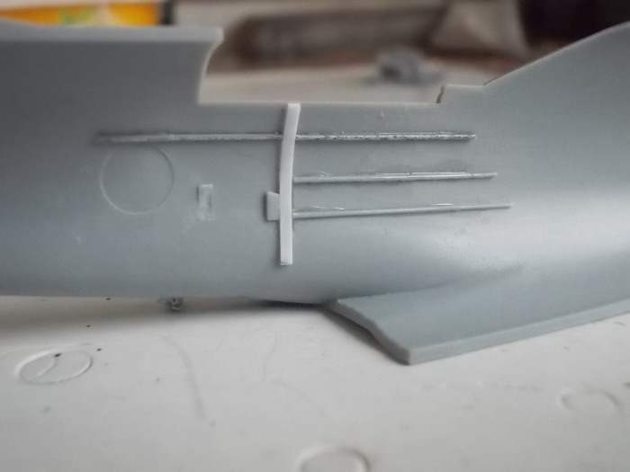 Сделал имитацию силового набора в кабинете.Прорезал люк радиостанции.Вклеил туда тонкий пластик,потом опять резать.