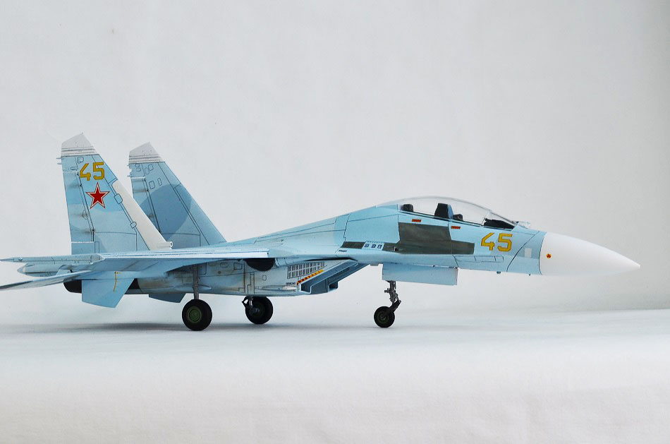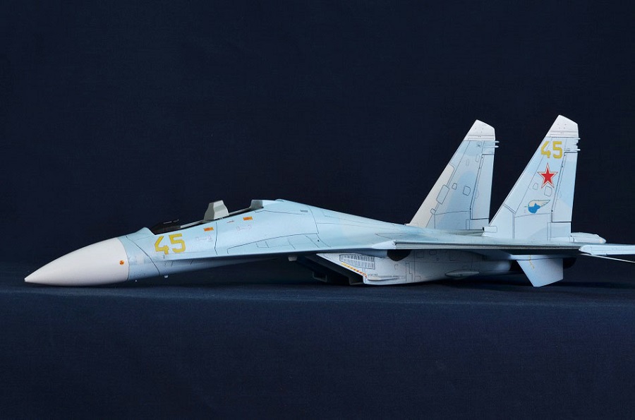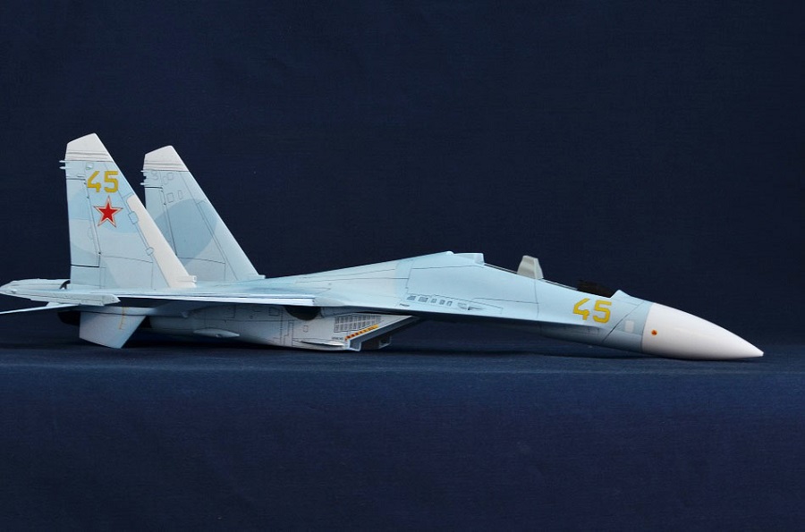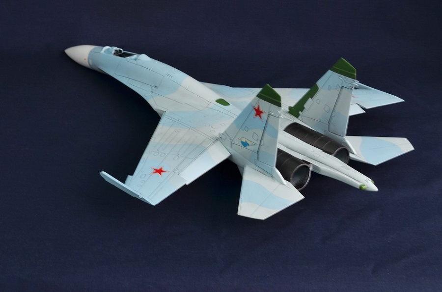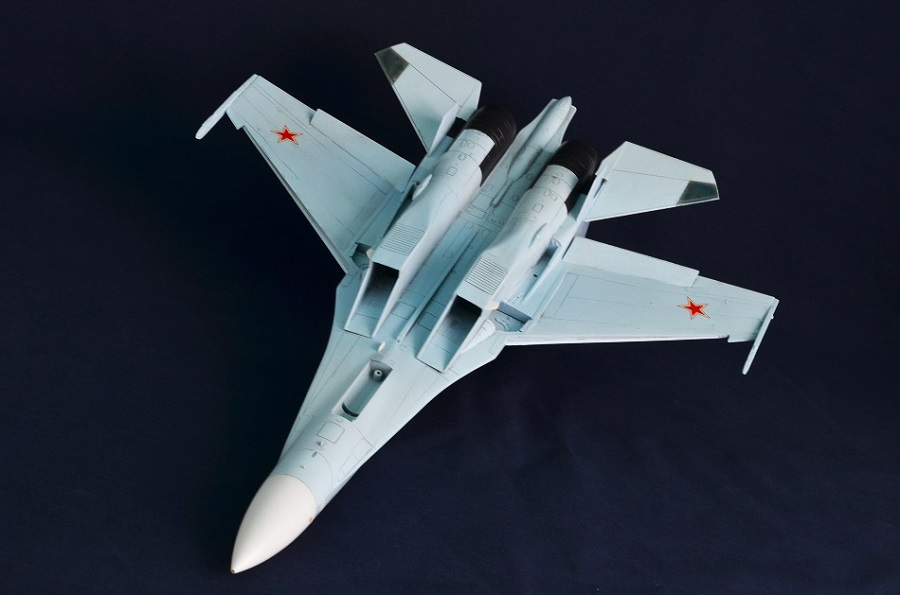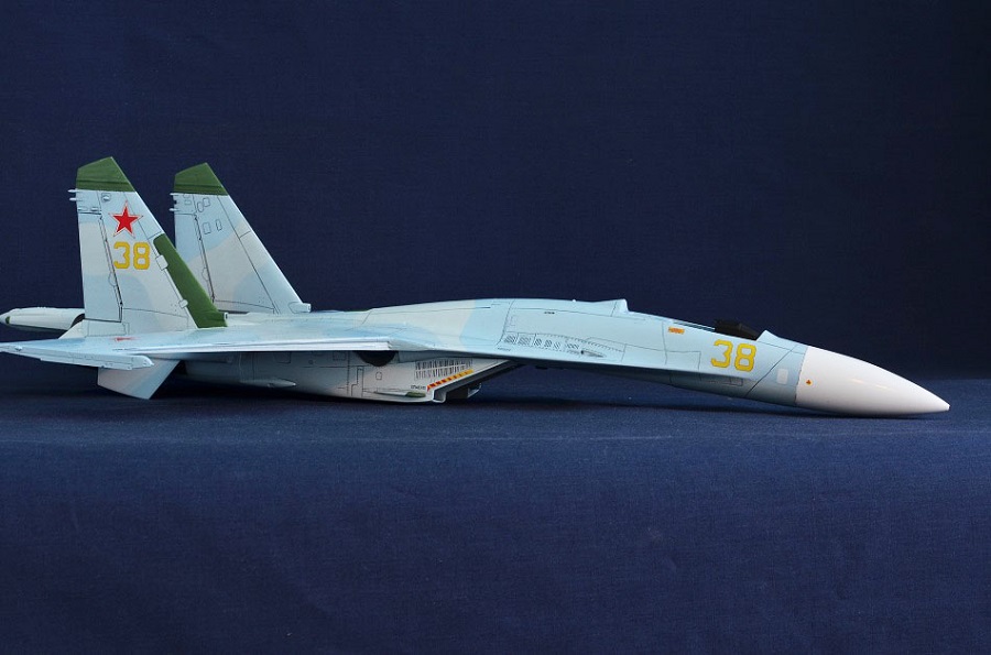 На Су-27П буду садить летчика в кабину, поэтому створки подпитки на воздухозаборниках будут открыты и поднято ЗУ.