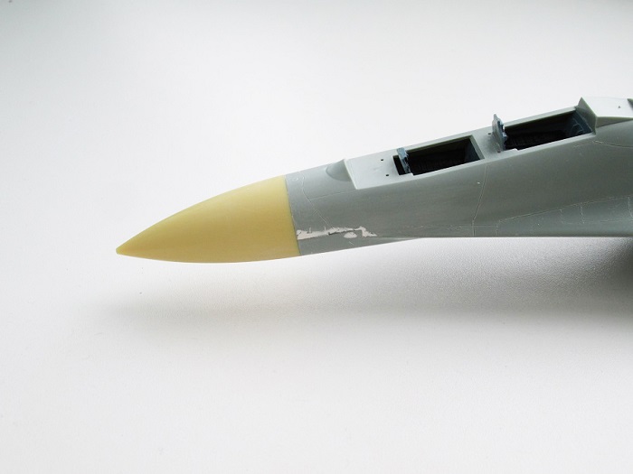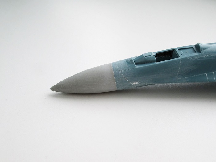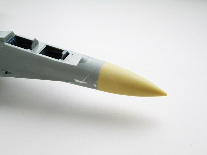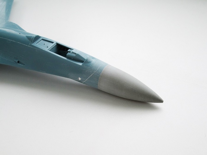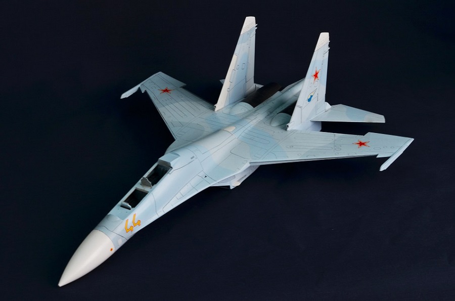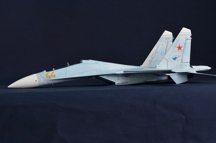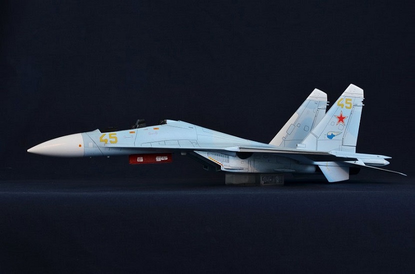 На Су-27П буду садить летчика в кабину, поэтому створки подпитки на воздухозаборниках будут открыты и поднято ЗУ.