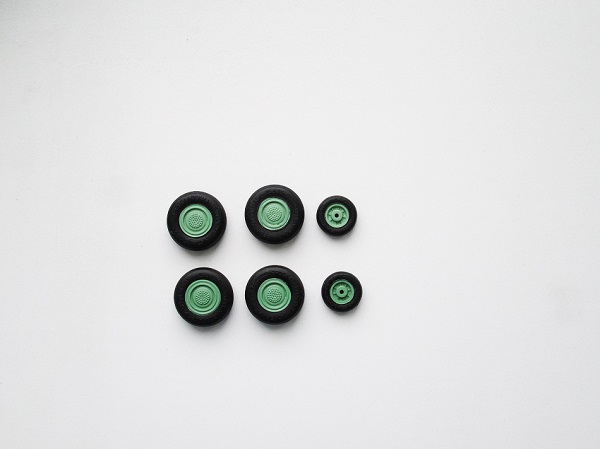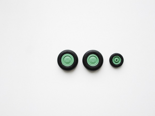 Сегодня посветил время колесам шасси, пневматики окрасил в черный (ЗВЕЗДА), диски АКАН зеленый (выцветший).