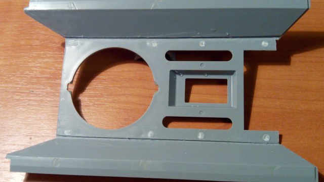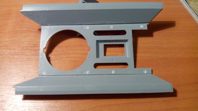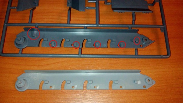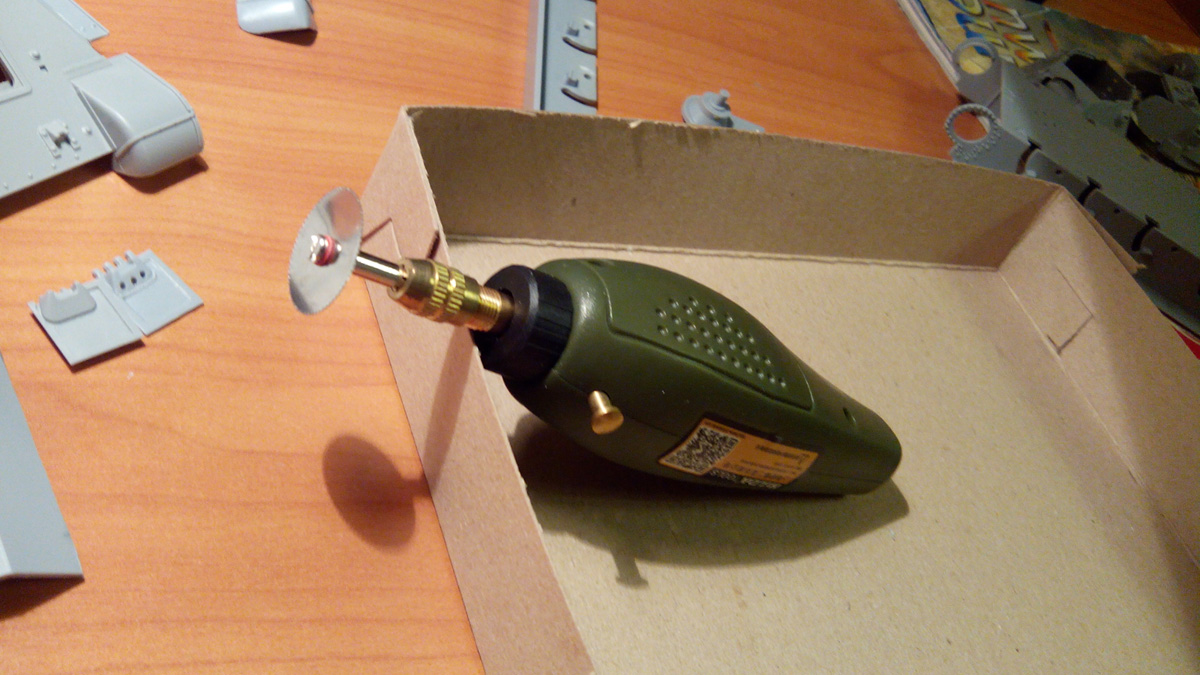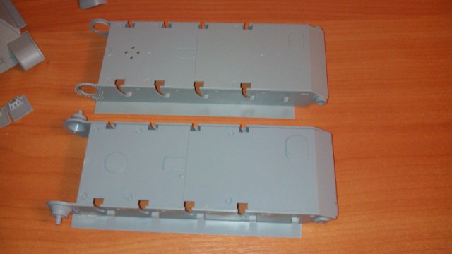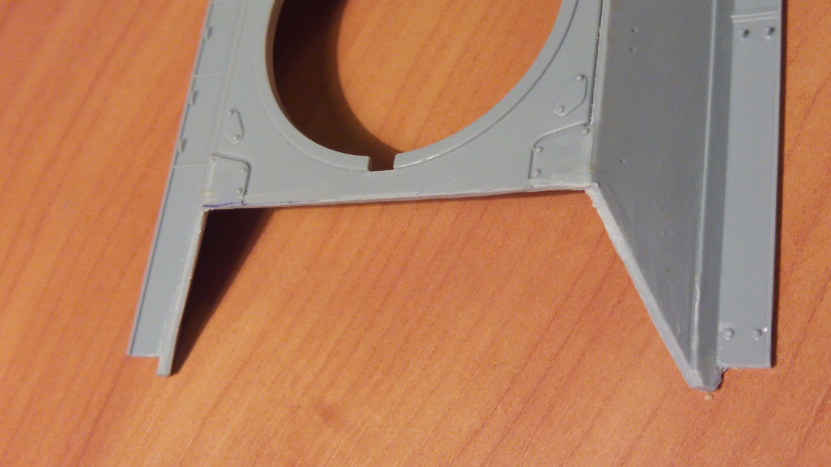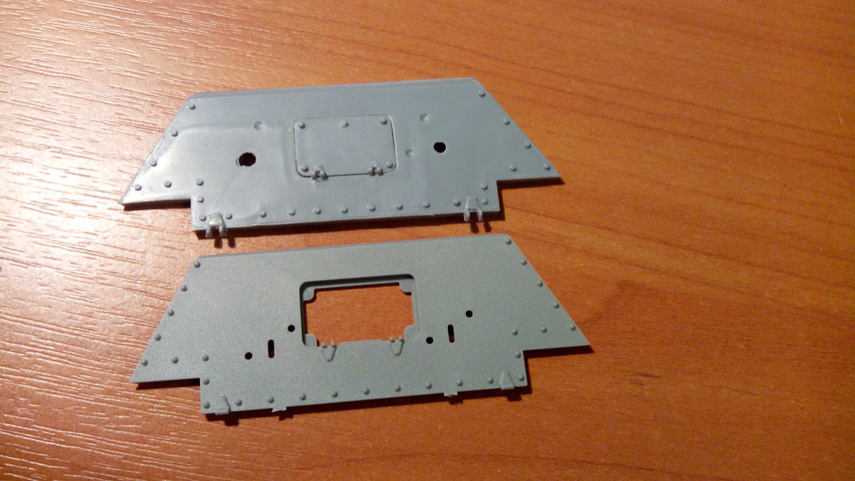 1. Сделал распилы вдоль корпуса с внутренней стророны. Т.к Макетовский корпус у надгусеничных полок шире Драгоновского на пару миллиметров, эти распилы позволят загнуть боковые стенки корпуса. Пилил, кстати, обычной полноценной ножовкой. Весьма удобно! Линия очень ровная, корпус подогнулся идеально!