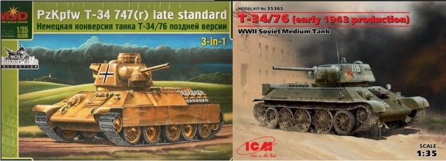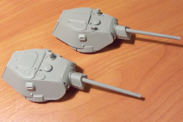 1. Башня слева - сварная сталинградская поздняя со скошенными скулами и острой маской пушки (деталей полный комплект - со временем без проблем дострою).