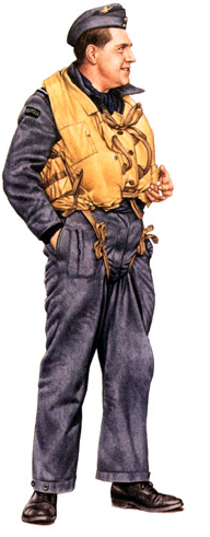Этот флайинг-офицер (лейтенант) королевских австралийских военно-воздушных сил был пилотом бомбардировщика «Ланкастер» 617-й эскадрильи. Он одет в стандартную полевую форму британских Королевских ВВС, поверх которой надет надувной спасательный жилет.