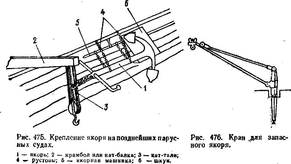 При подъеме и креплении якоря его хват-талями притягивали (для более плотной посадки) к борту.