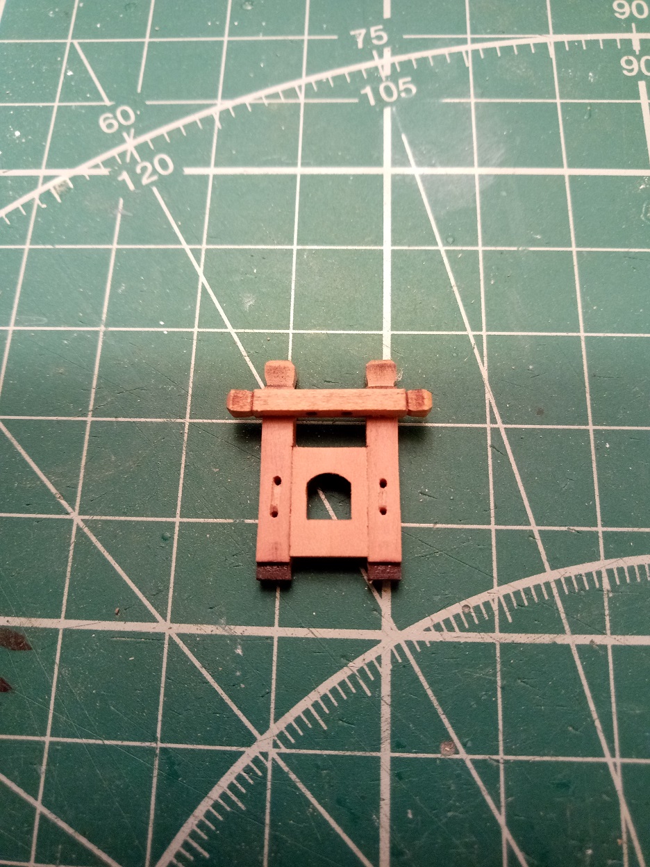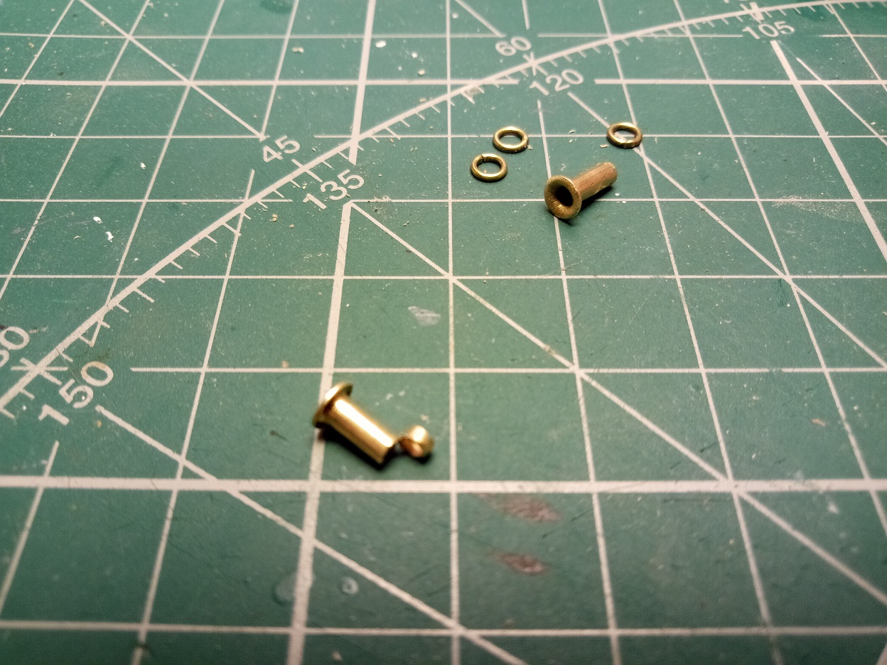 Закончил делать клюзы, так же установил петли на пушечные порты, предварительно зачернив их.