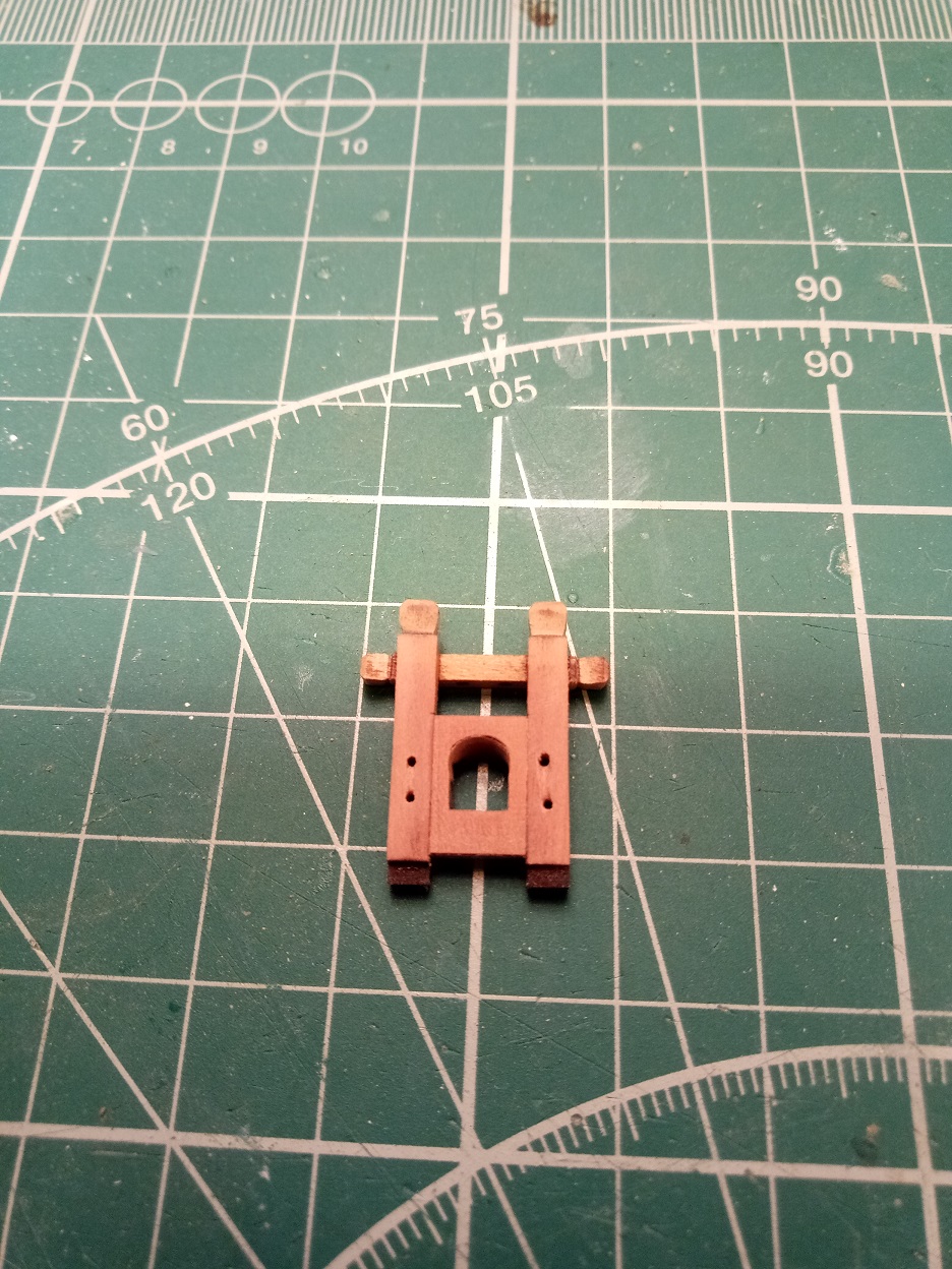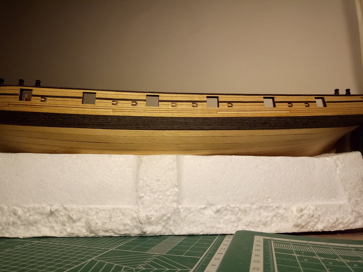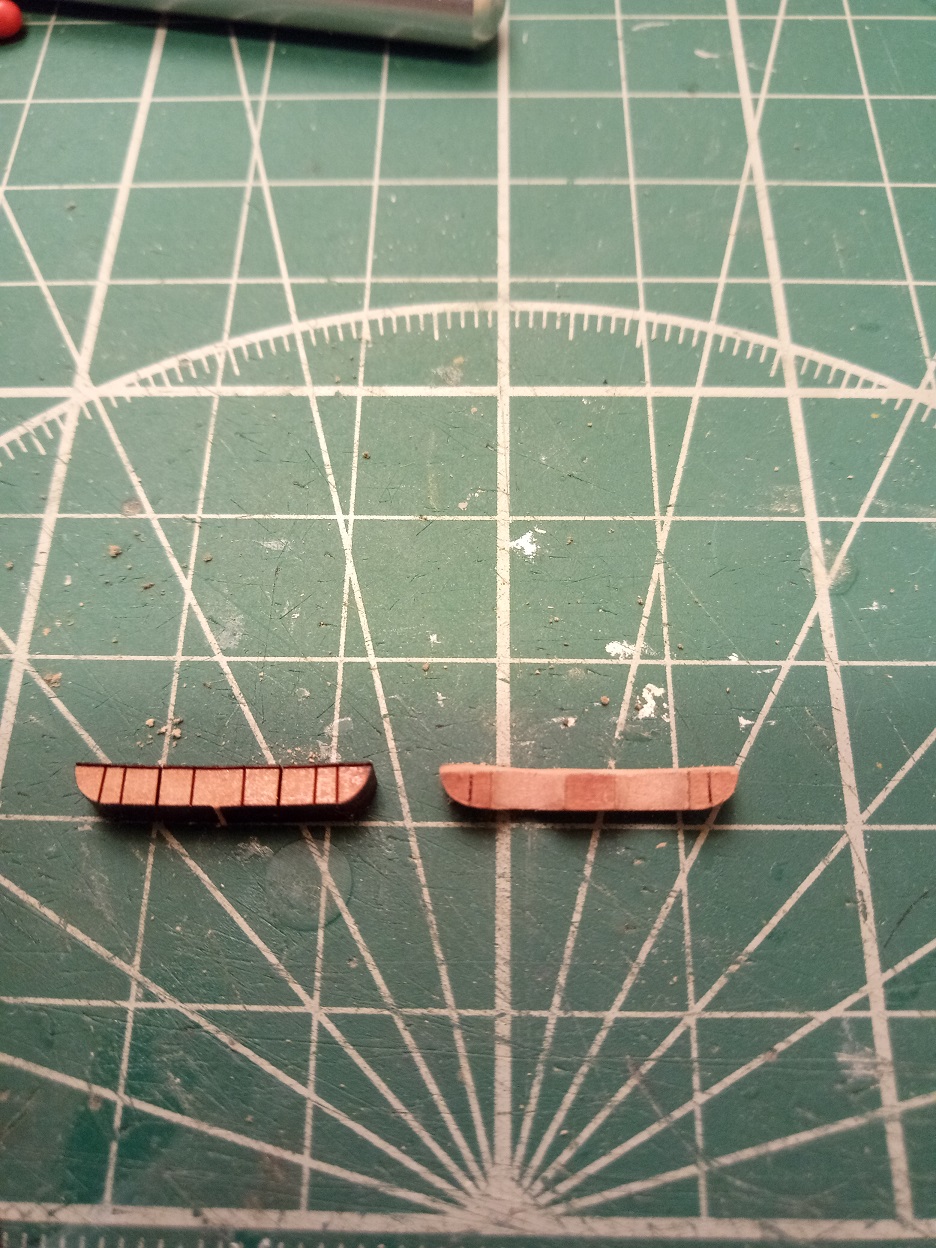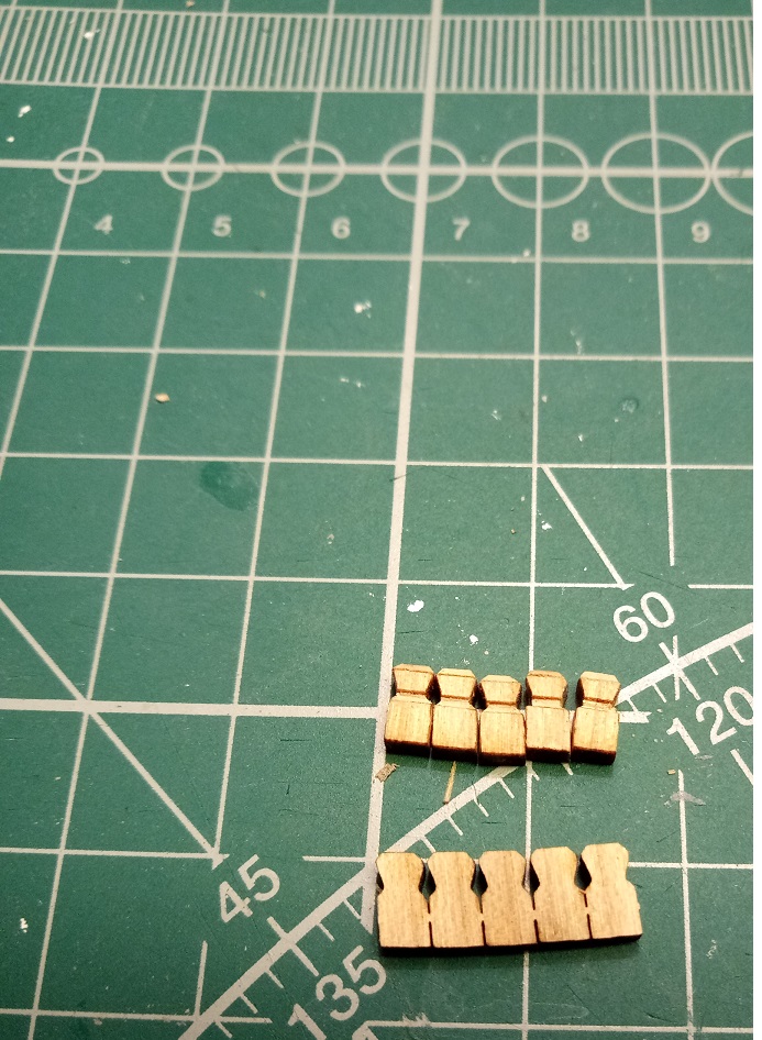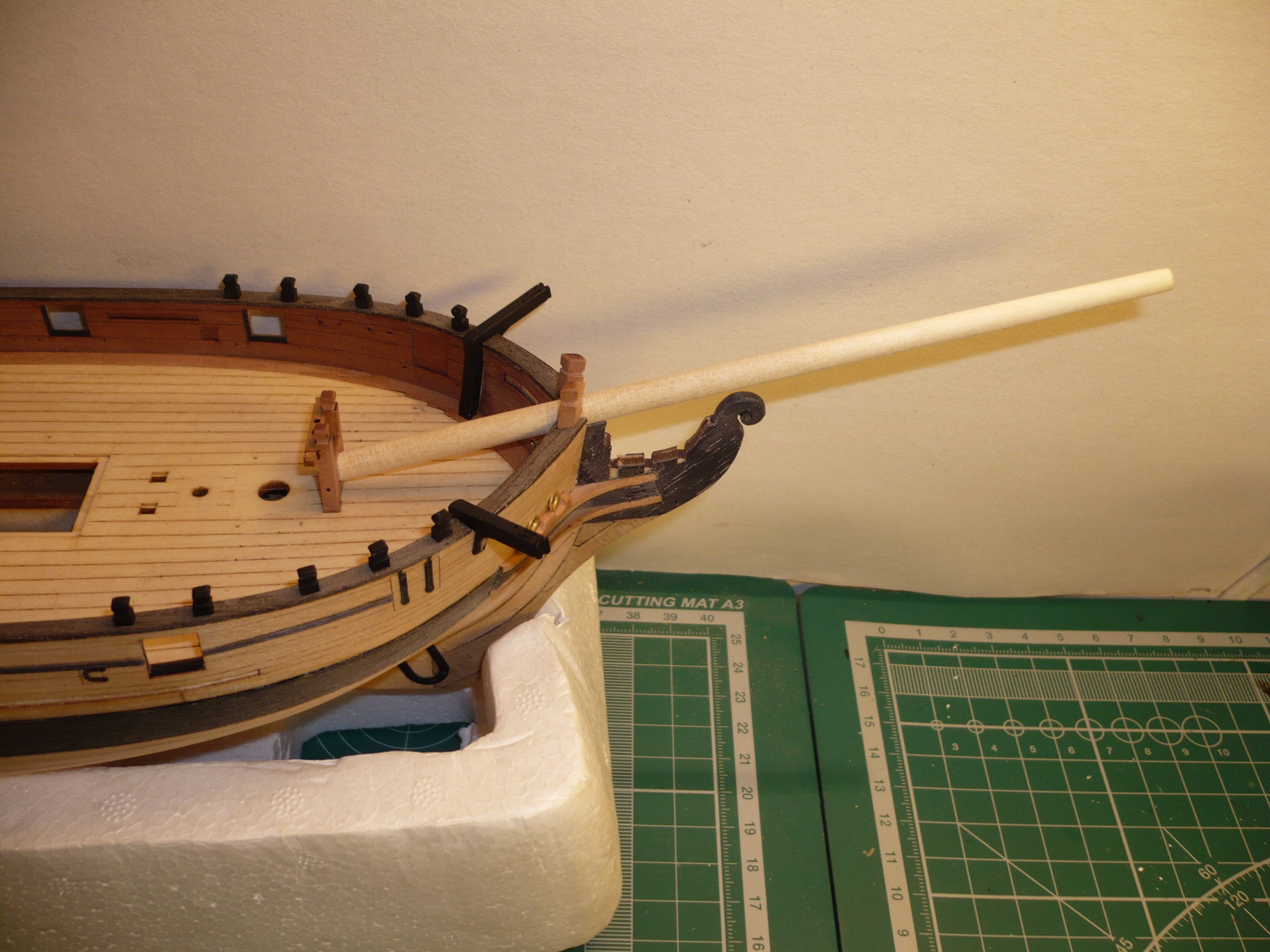 Всем привет друзья! Давненько не обновлялся. Убрал "гвоздики" с кат балок путём ошкуривания и окраски их в чёрный цвет. Так же собрал битенги бушприта, имитировал шкивы для такелажа путём сверления двух отверстий и их расточки (по типу как на кат балках). Установил шерстрек с обоих бортов.