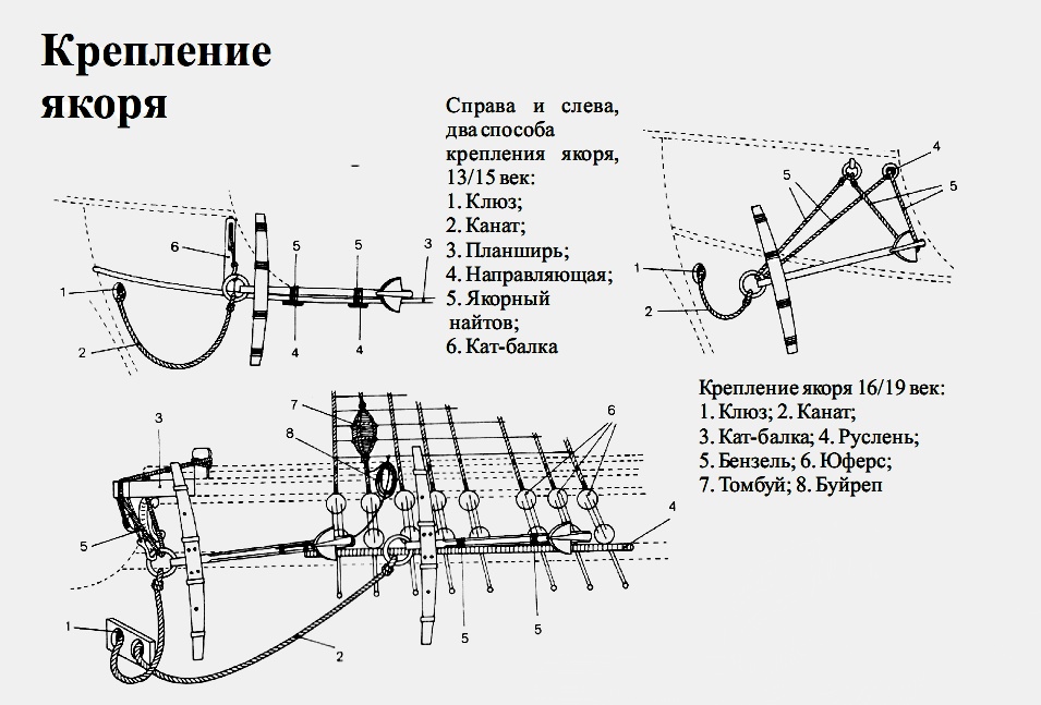 Затем за тренд заводили рустов, который крепили к кнехтам на палубе.