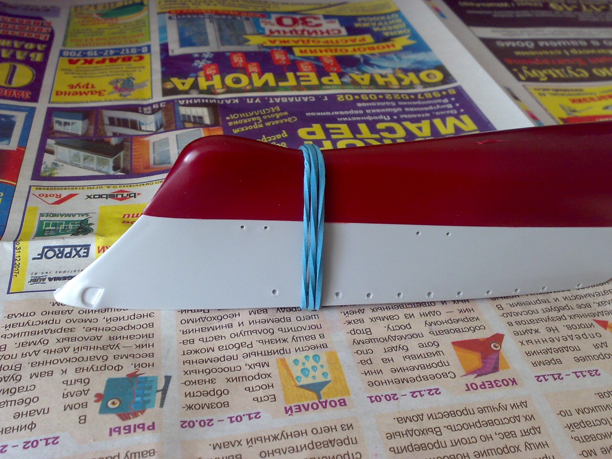 Еще могу дать совет приклеить на небольшом участке, неважно с носа или кормы, а потом проникающим клеем понемногу, побортно, проклеивать периметр. Несколько сантиметров, схватится клей - дальше двигаться. Причина та-же доводка стыка полегче будет. Я у Трумпа делал четыре модели, и только у Либерти состыковалось относительно без хлопот, но... относительно.