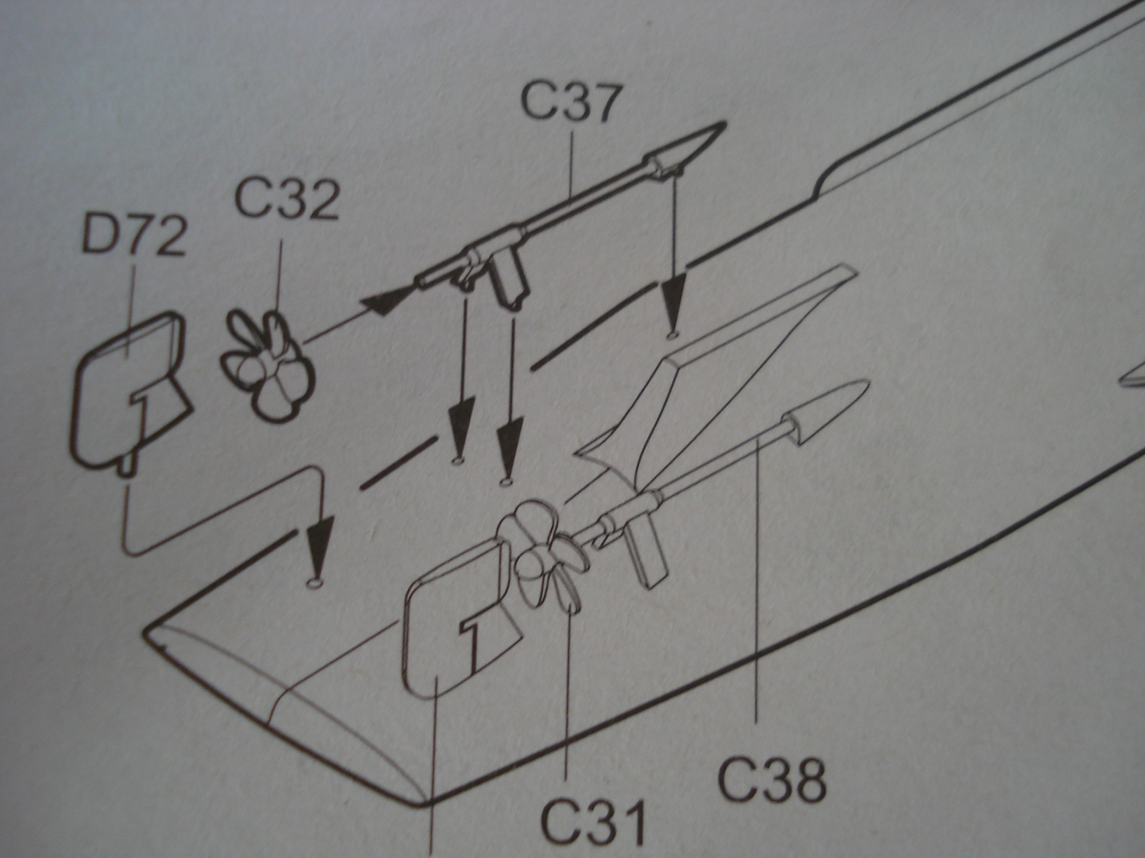 Трумпетер по инструкции предлагает устанавливать два вертикальных руля, а я так понял на всех кораблях этого проекта ставили только один руль?