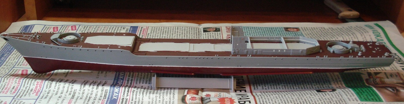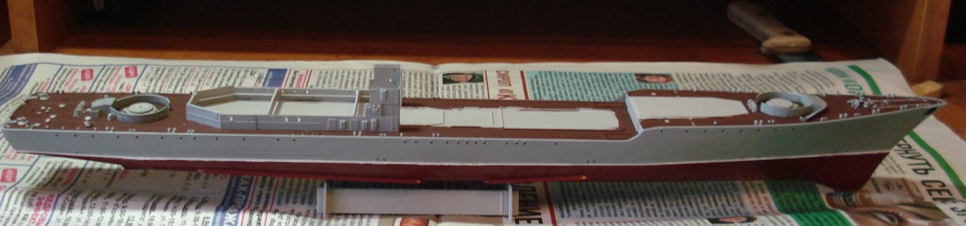 Всем Привет! Все оказалось не так страшно, как я себе представлял. Пришлось повозиться надфилем с кормовой частью корпуса, и удалось более менее аккуратно подогнать и склеить верхние и нижние части корпуса.