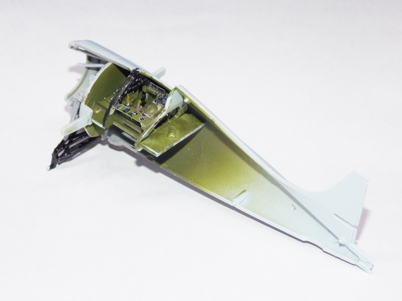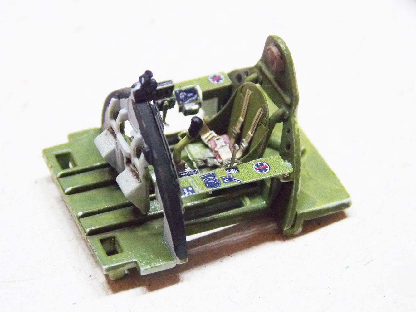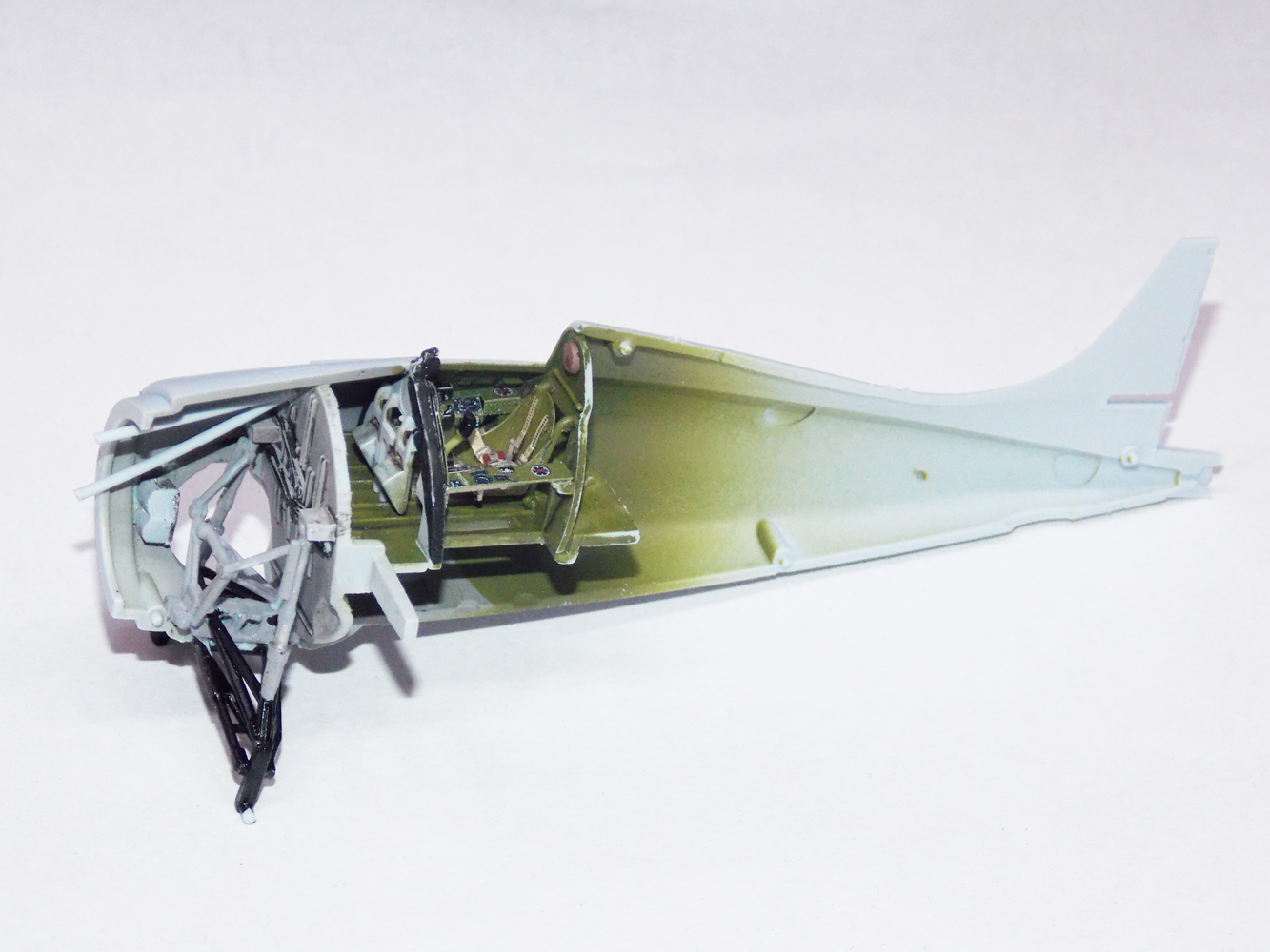 Винт глянул вечером. Цвет пришлось делать под цвет травления. Да и все равно внутри не видно ничего. Кокпит очень мал.