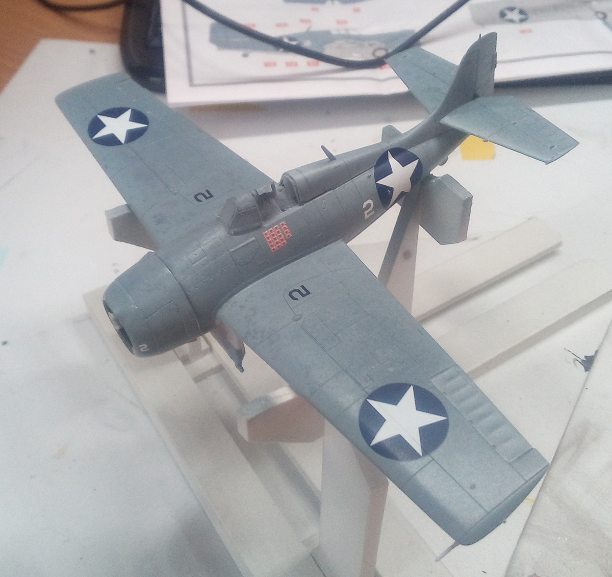 Андрей, американские палубники перед покраской грунтовались (из-за их эксплуатации в условиях повышенной влажности и солености воды). ЛКП было достаточно хорошего качества и для этих самолетов характерны не столько сколы, сколько потертости. В основном до грунтовки (цинк хромат), реже прям до металла.