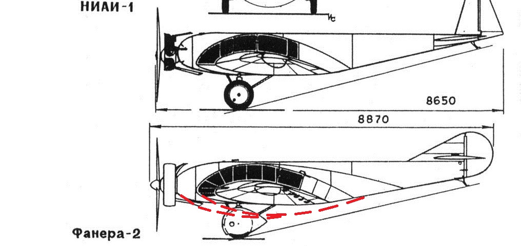 Отличительной, харктерной чертой облика Фанеры был чересчур толстый профиль крыла в корневой части. Вот здесь, например, хорошо это видно. И здесь, и здесь. Довольно крутой изгиб верхней части крыла. На модели то этого нет.