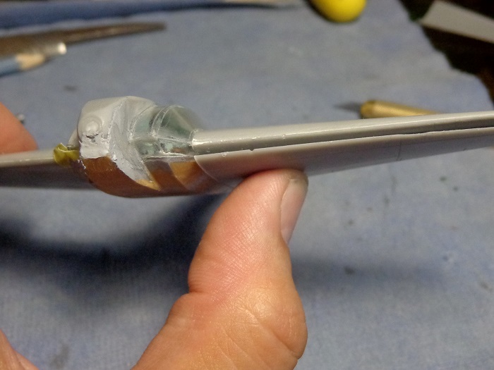 Из кусочков пластика сделал наклонные "переходы" между крыльями и фюзеляжем.