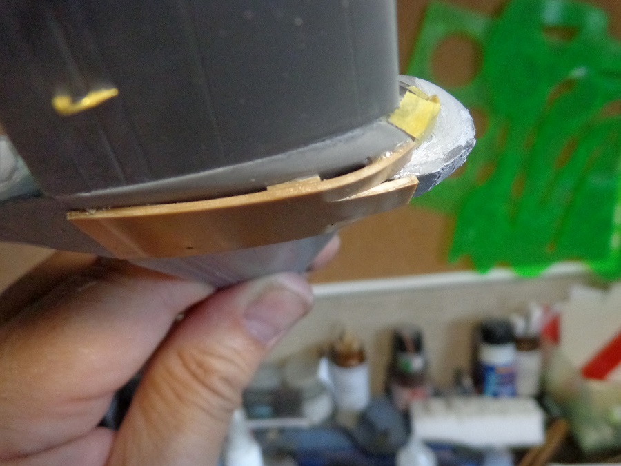 Наклеил куски пластика, намазал шпаклевки. Убраю после этого лишнее. Для постороннего взгляда может выглядит не очень понятно, серое сливается с серым.