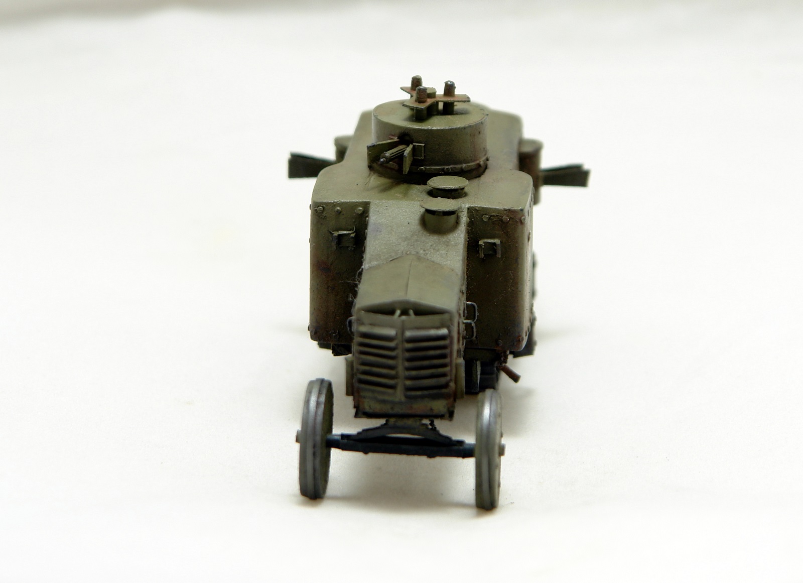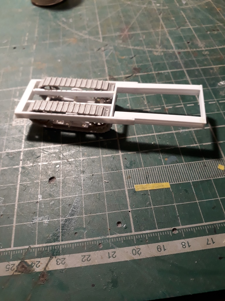 Сделал новую задняю часть рамы с движителем и начал пилить корпус. Все надо 10 раз продумать и вылезают проблемы там, где их не ждешь. например, при пристальных узучениях фоток, оказалось, что крыша в задней части покатая по краям. Тоже пришлось корпус переделывать.