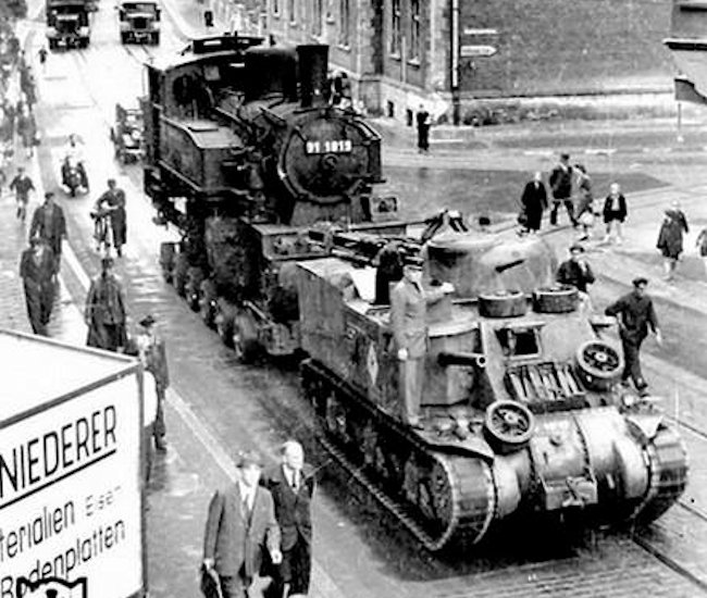 Таком даёт в наборе ствол от М3 Lee, он смотрит вперёд. На фотографиях видно что ствол у М31 смотрит немного вверх. Что бы при открывании не задевать стойки крана. Кстати стволы оставляли для устрашения, они просто приварены к люкам. Казённая часть отсутствует.
