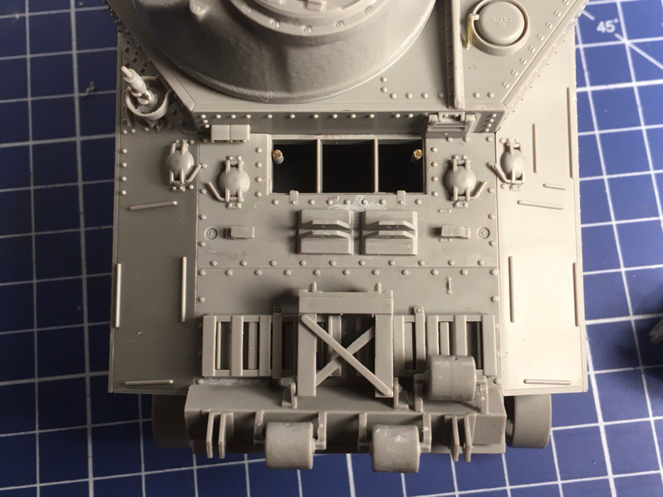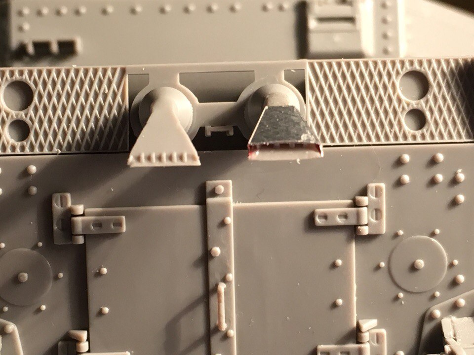 Небольшое продолжение. Поменял петлю перед люком, была без отверстия. Сделал упор для люка, на М3 Lee таких нет. Потому что у М31 сзади короб в который люк при открывании будет упираться. И заменил одну часть в антенном вводе. Слишком много было облоя.