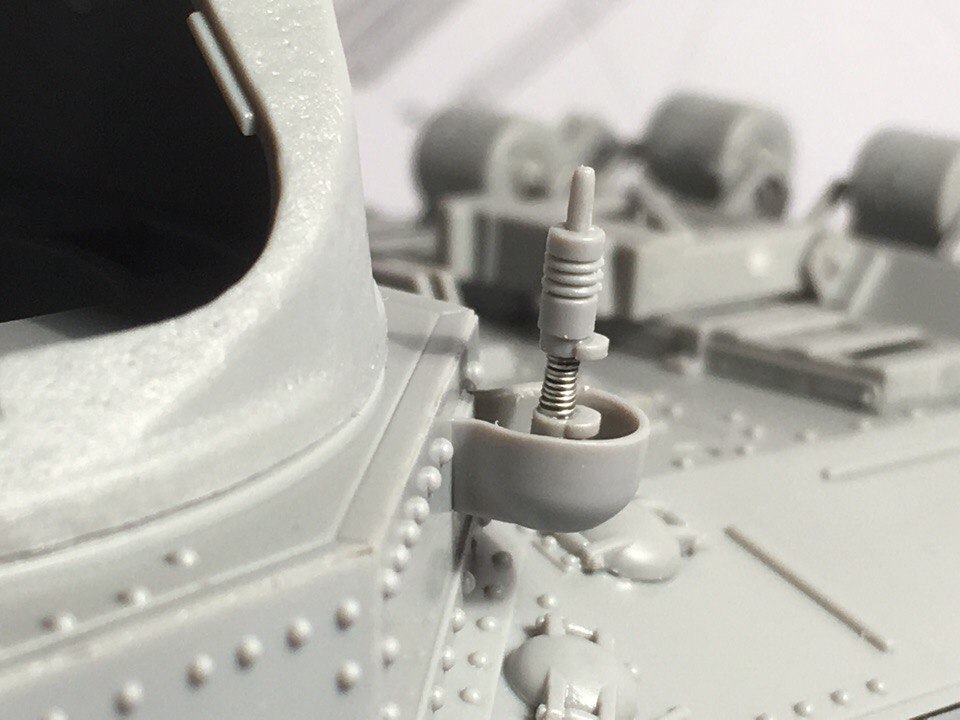 На всех фронтовых фотографиях при рассмотрении кажется что конструкция этого элемента такая же, но присматриваясь очень долго можно увидеть очертания и конструкции как в наборе)) Но всё таки удалось найти одну фотографию где ясно видно что и как. И это американская машина. Так что приступил делать крепления по моему мнению правильные.