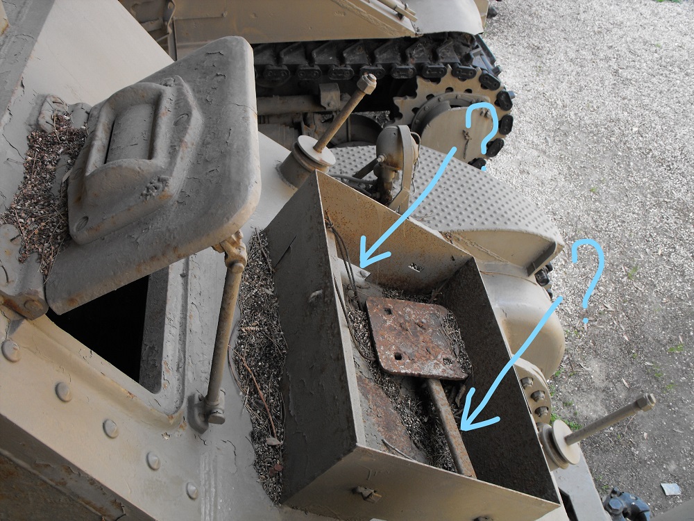 Эти ящики служили для хранения запчастей для траков. Перегородки их держали от выпадания. Так как это ремонтная машина и на ней всего с двойным запасом, это видно на фото: весящие звёздочки, катки, короче самый "горящий товар"