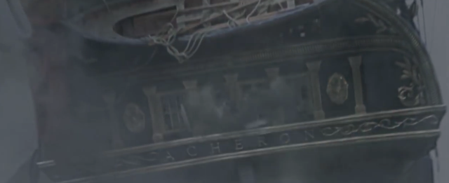 Что "Ахерон" ( в русской озвучке ) из фильма ведёт неравный бой с многократно численно превосходящими кораблями, носящими ( в написании ), такое же имя, но выглядящими, как бы помягче сказать, несколько иначе. Да, ладно уж… СИЛЬНО ИНАЧЕ!