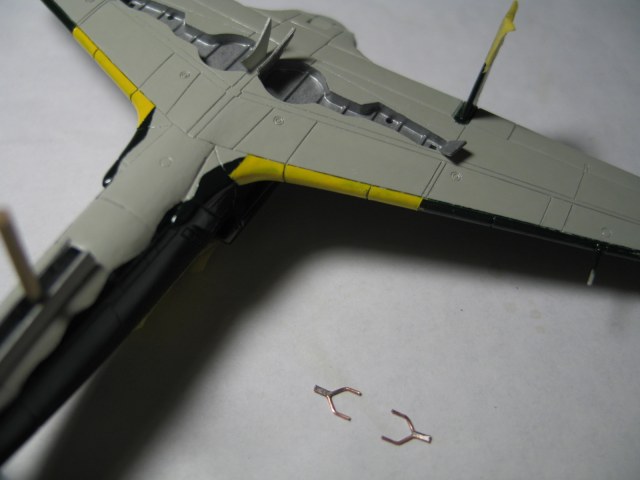 Тут возникает небольшая заковыка: у внутренних створок имеются довольно заметные тяги, а в нашем наборе они не предусмотрены. Поэтому, попробуем изготовить их из медной проволоки: