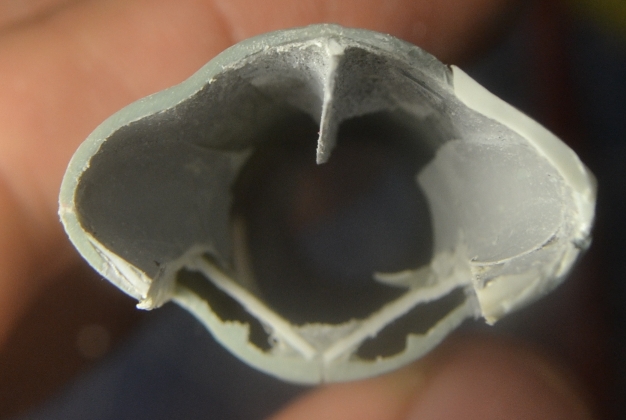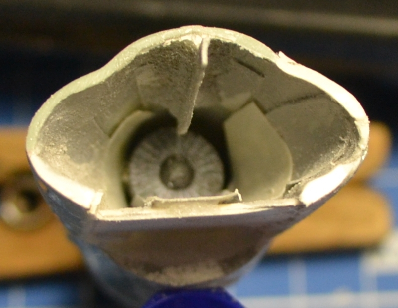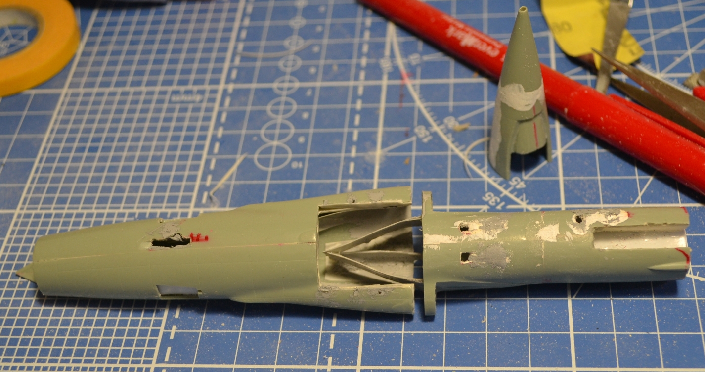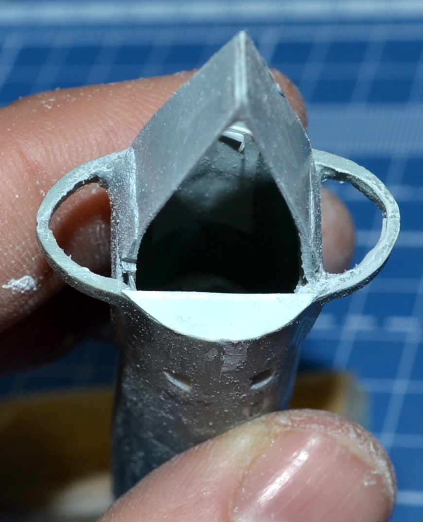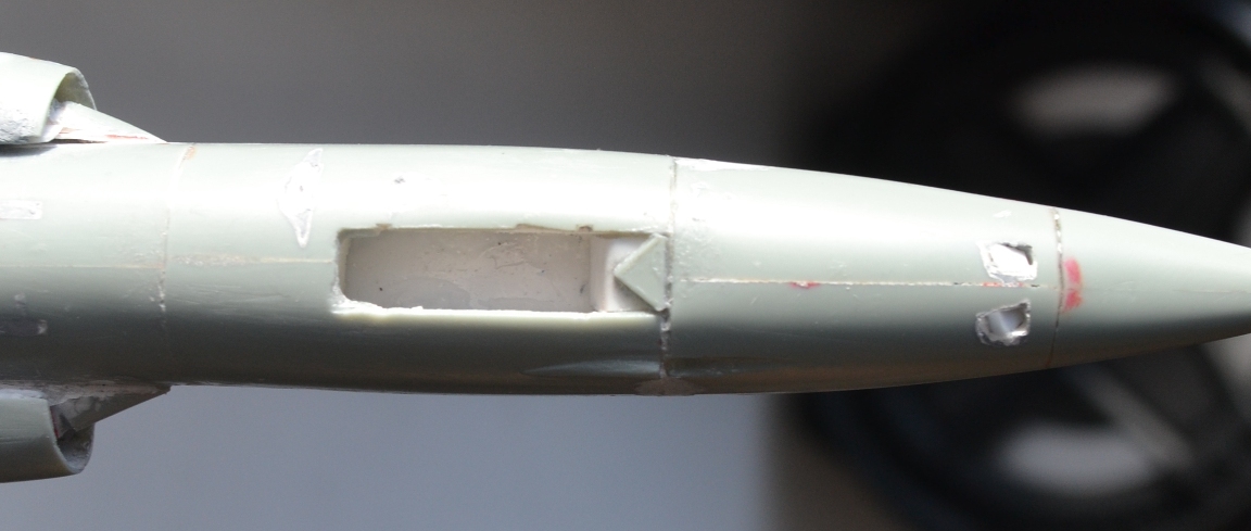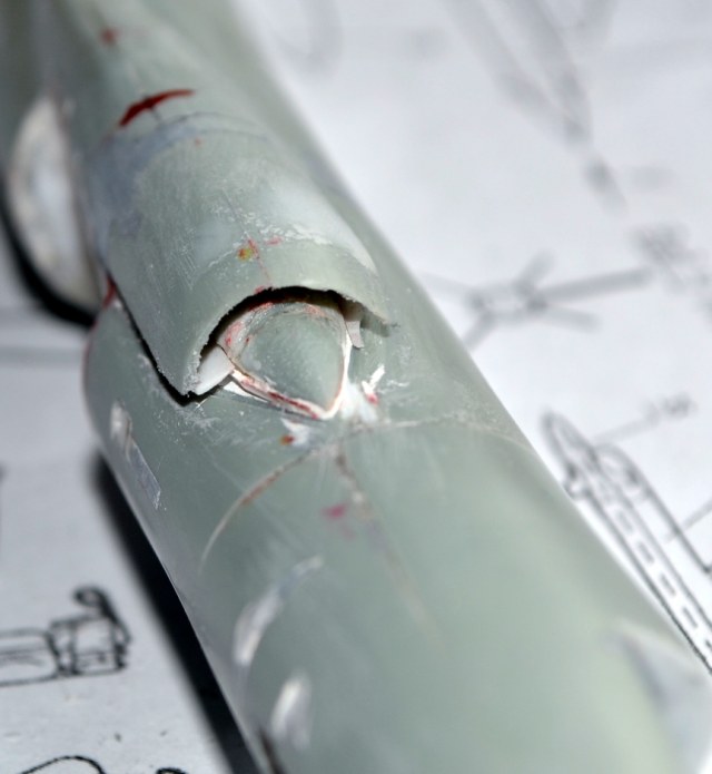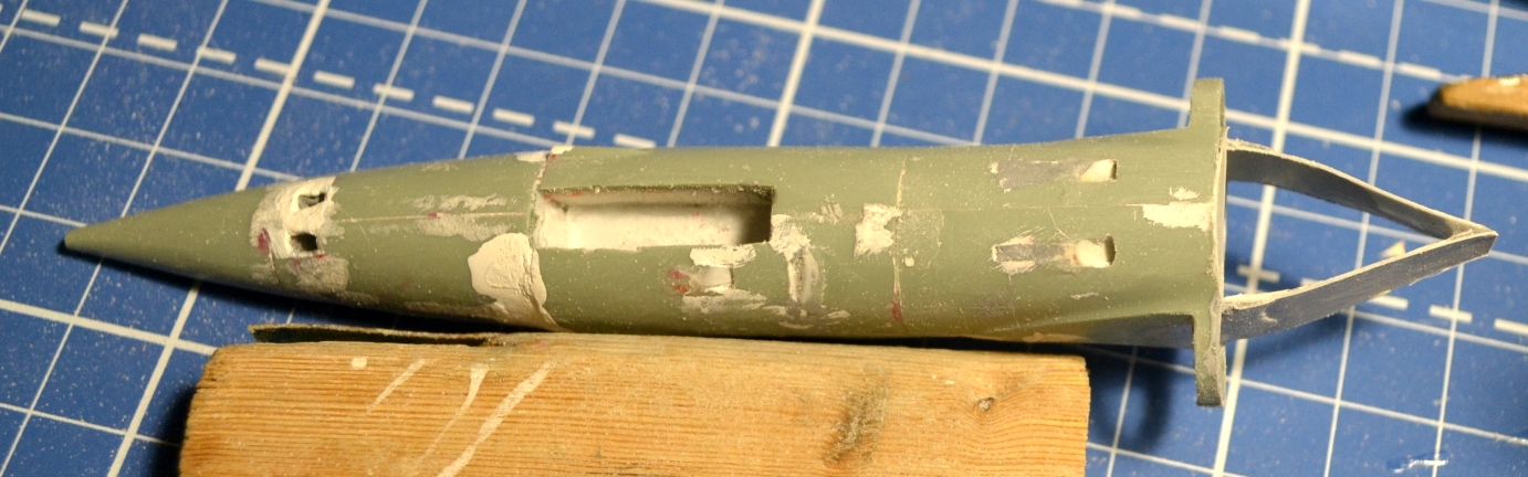 На этом разрезе я комбинировал мини-ножовку и насадку в виде мини-циркулярки для бормашинки - надо было выбрать внизу побольше, а сверху поменьше. Опыт пользования насадки приятный, с её же сделал прорези для горизонтального оперения торцевых баков - пилит прекрасно, но рука нужна твёрдая :-)