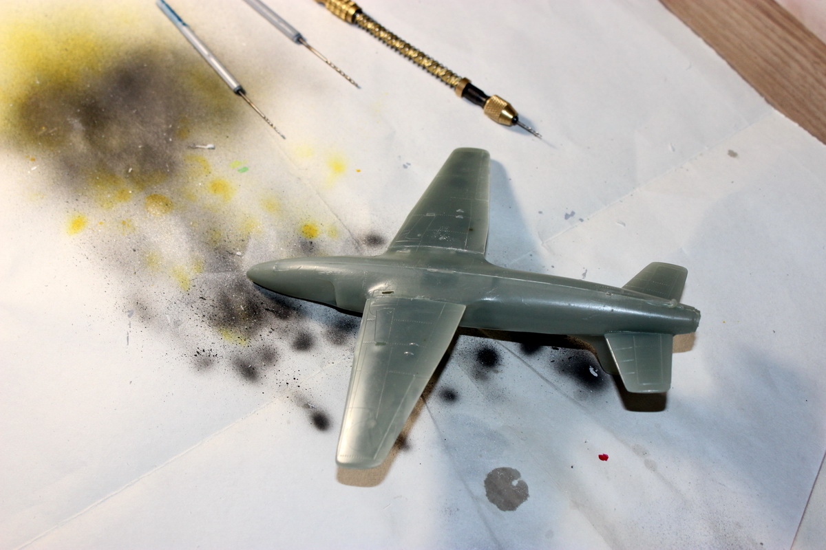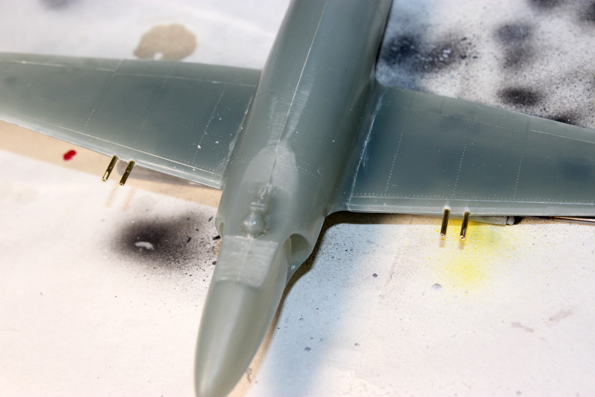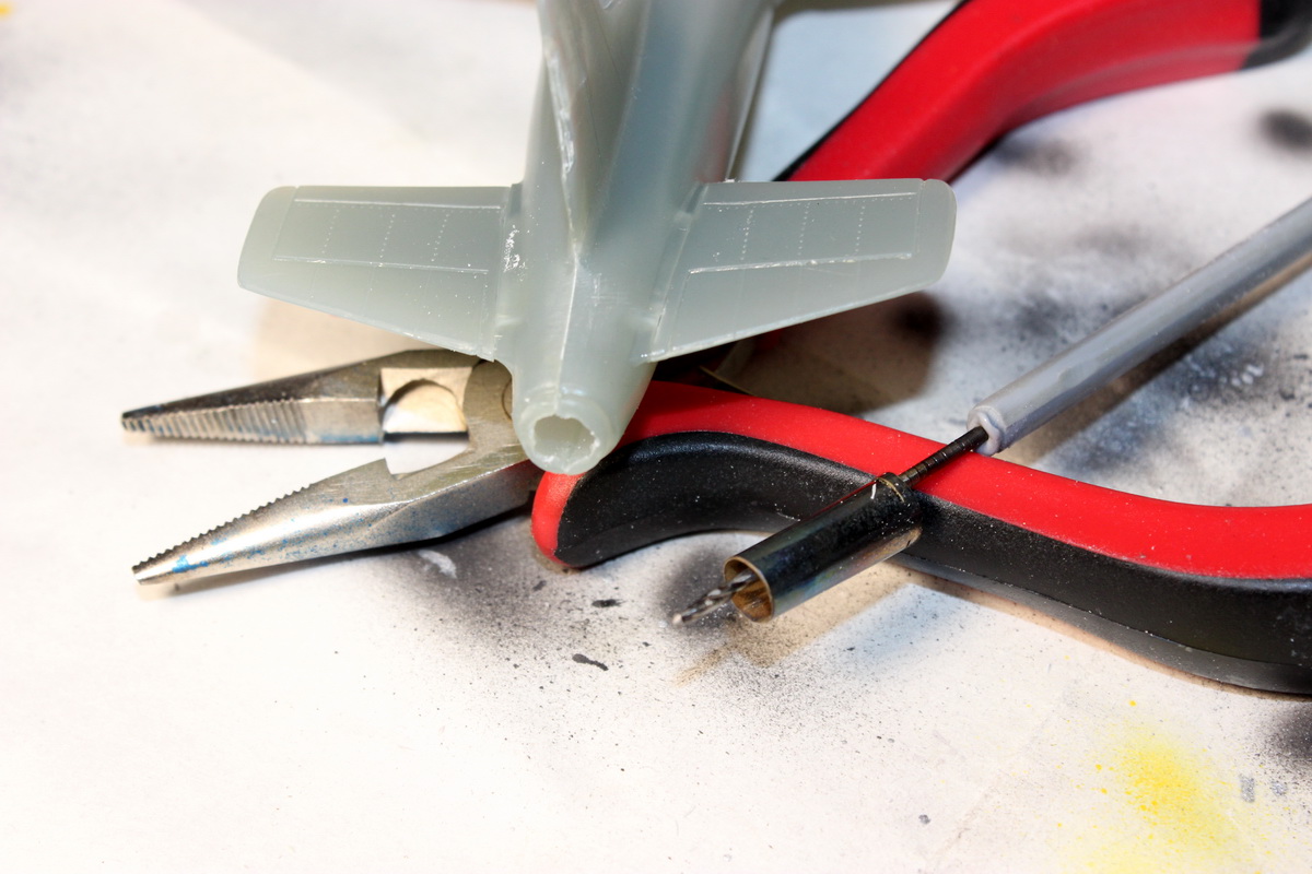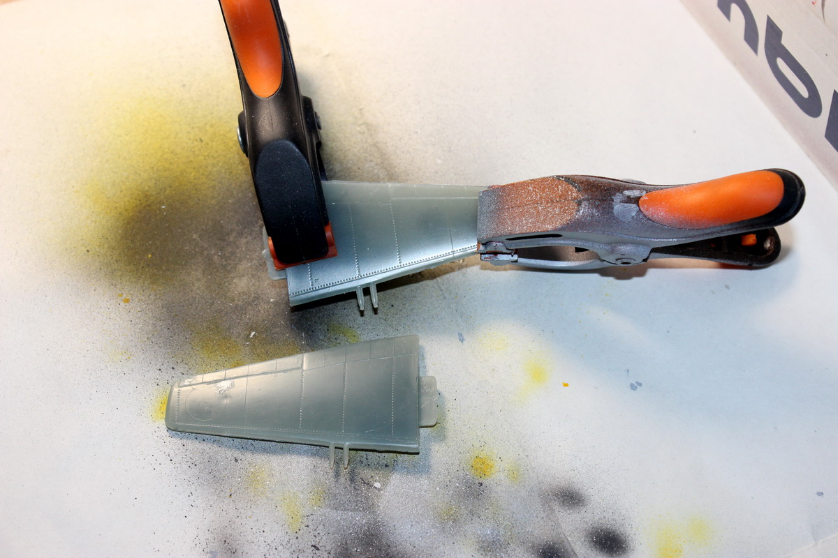 Я в эфире! Приклеил стабилизаторы,удалил пушки, просверлил отверстия на месте пушек, начал шлифовать стыки: