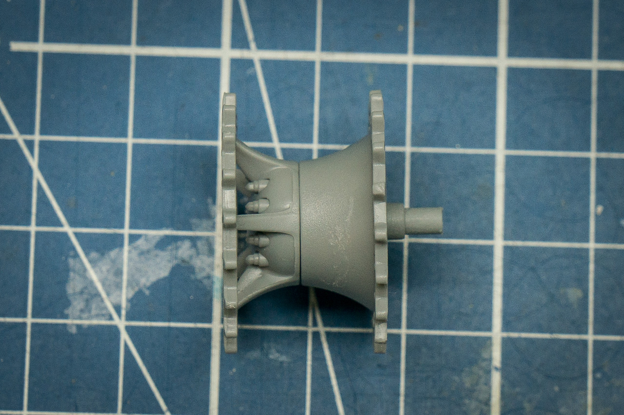 Начал собирать ходовку. Остановлюсь отдельно на ведущих звездочках. Есть интересный момент с зубцами, Амьюзинг дает их 18. Но в архивных фото нет ни одного, где есть установленные зубцы. Просто голый каркас звездочки. У Дойля, которому максимум доверия - 18. У Вальдемара Тройки - 9, как и у Трампетера кстати. У разных немецких машин разное количество, где-то 9, где-то 18. Как я понял даже на разных модификациях одной машины может быть разное количество.