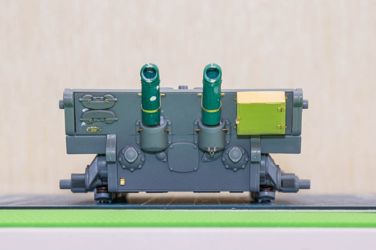 Добавлю несколько поручней для доступа на крышу башни, смущает идея этих поручней на люке загрузки снарядов. Но думаю это ничему не противоречит, надо лишь проверить распахивается ли люк вместе с поручнями и не упирается ли в ящики.