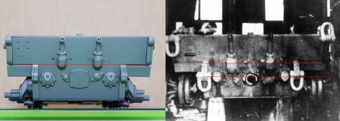 @knyaz написал:На люке доступа к двигателю поставьте штыри для навески пускача-двигателя от кюбеля, и, соответственно, между ними воткните лючок прикрывающий отверстие для вала этого пускача. Пусть в реальности этот люк отсутствует а на оригинальном чертеже и у Дойла изображен без подробностей, но если посмотреть на Пантеру и Тигр аналогия очевидна.