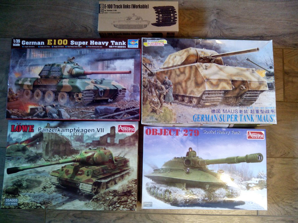 Теми тремя наборами был Лев, Объект 279 и E-100 от Trumpeter. Даже сохранилась раритетная фотка: