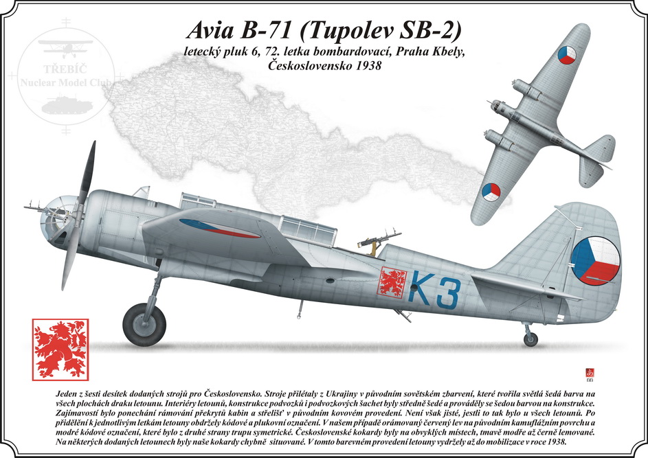 Вобщем, анонсируется СБ-2 (Авиа В-71) для Чехословакии в перегоночном варианте, вернее в только заступившем на службу. По логике вещей самолёт на момент 38-39 годов должен быть не слишком попользованным, возможно что и без вооружения.