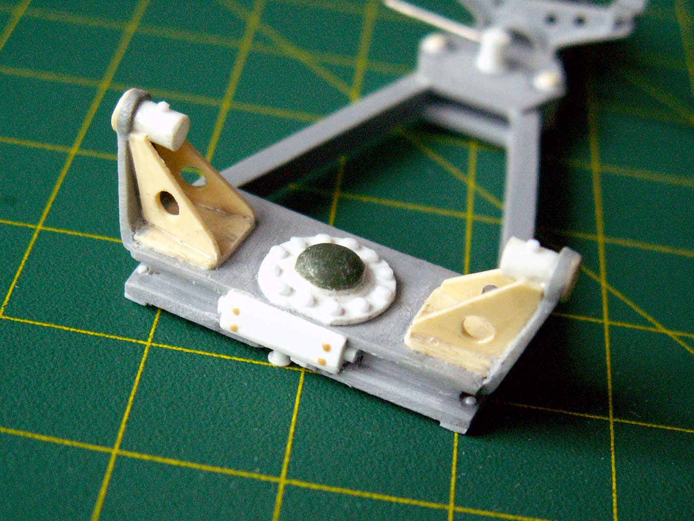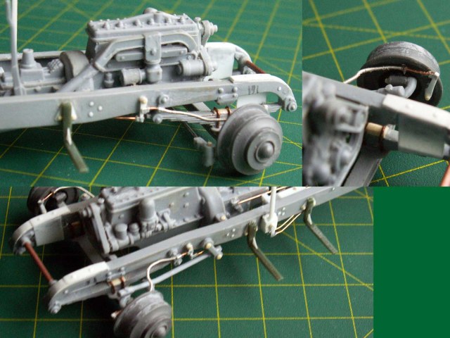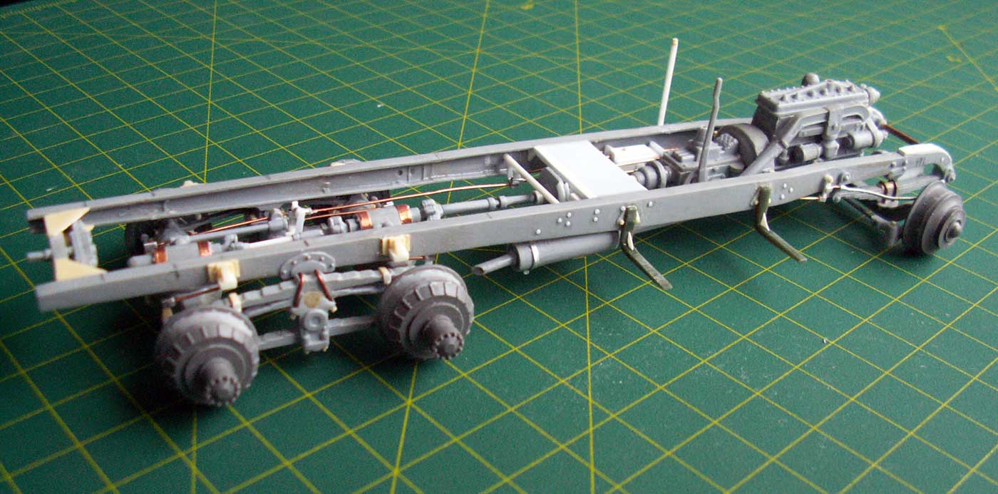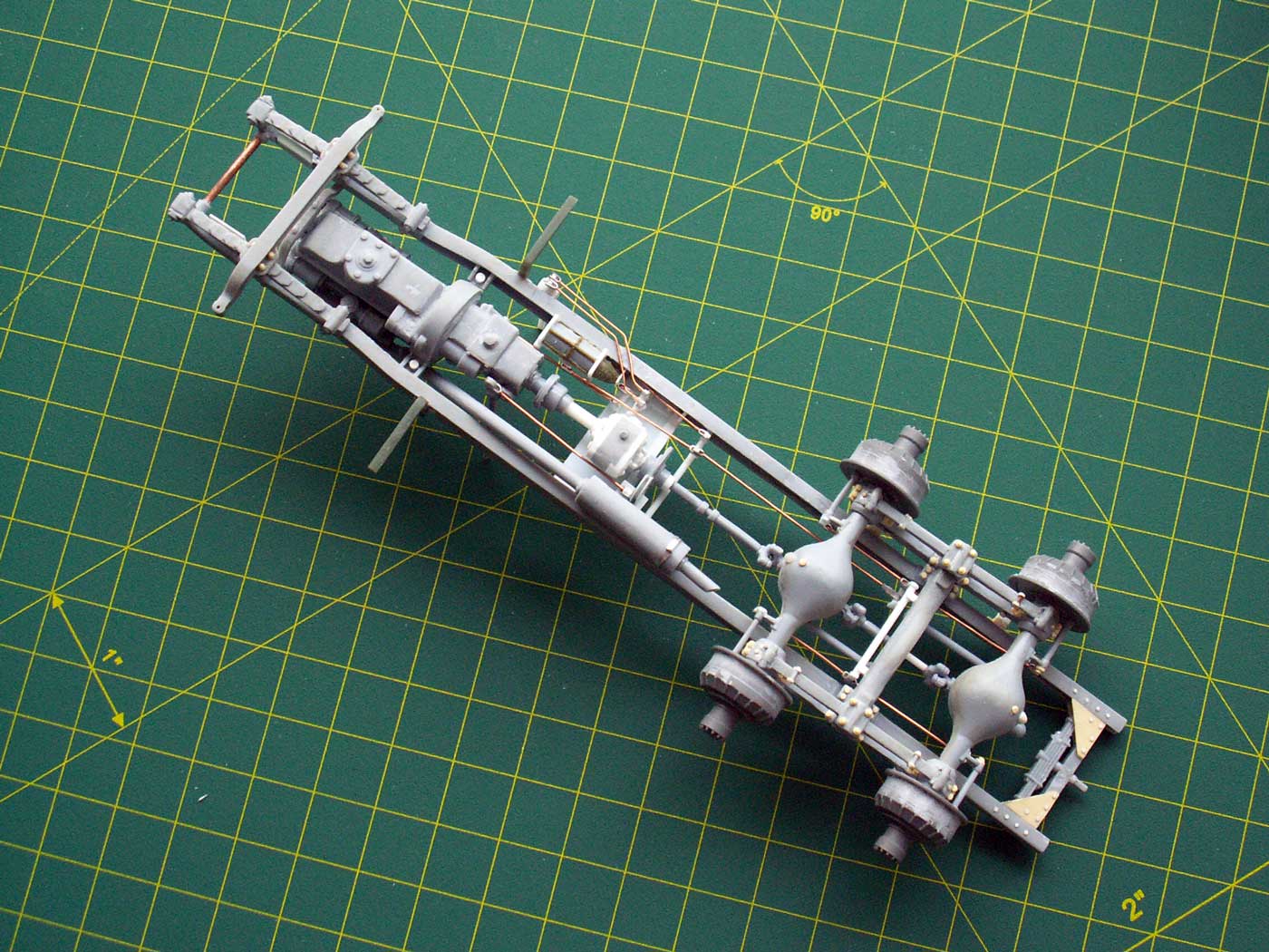 Задняя часть с крыльями совсем не подходит для данного экземпляра. Крылья непонятной формы, что-то похожее на подрамник... Пришлось переделывать. Все крепилось к кабине. Сделаны бак с креплением, рейка механизма горизонтальной наводки, кронштейн запасного колеса и так, по мелочи... винтики, шаечки ))))