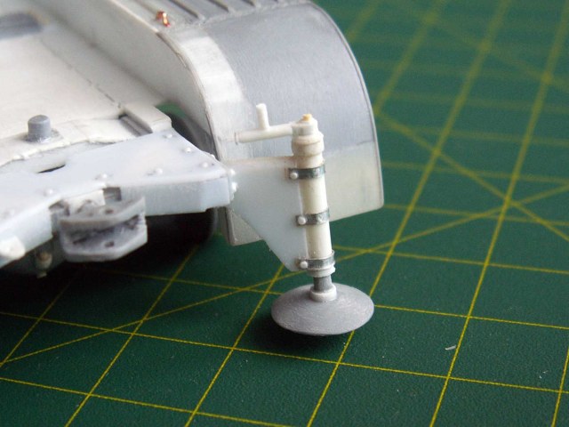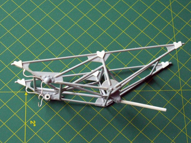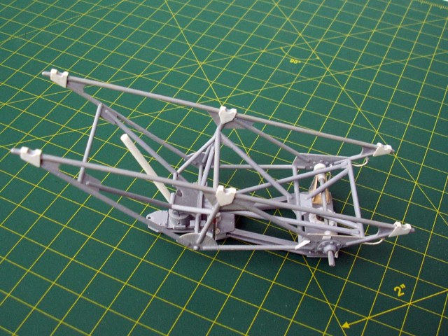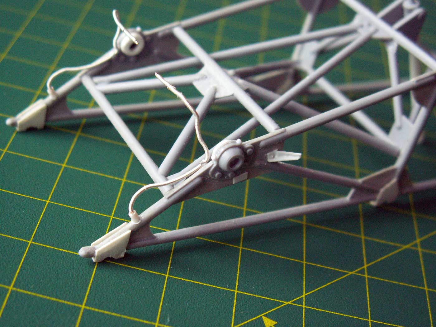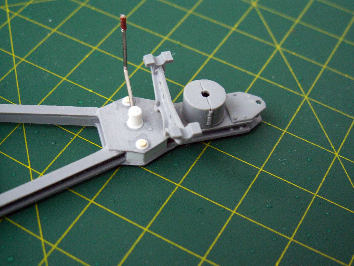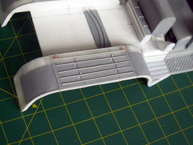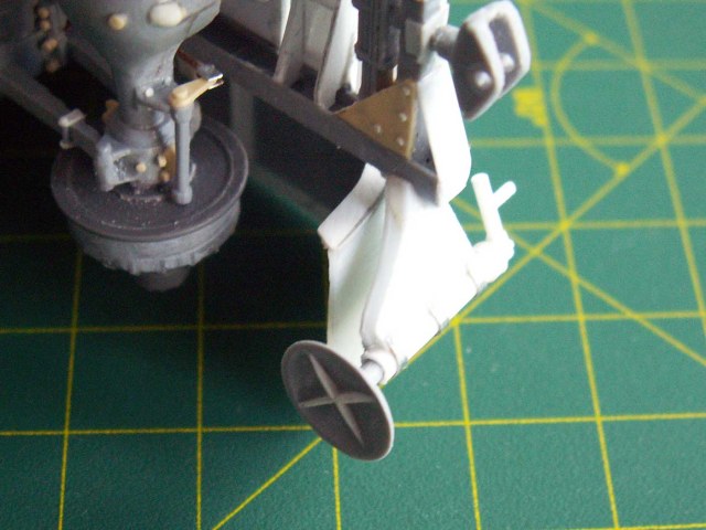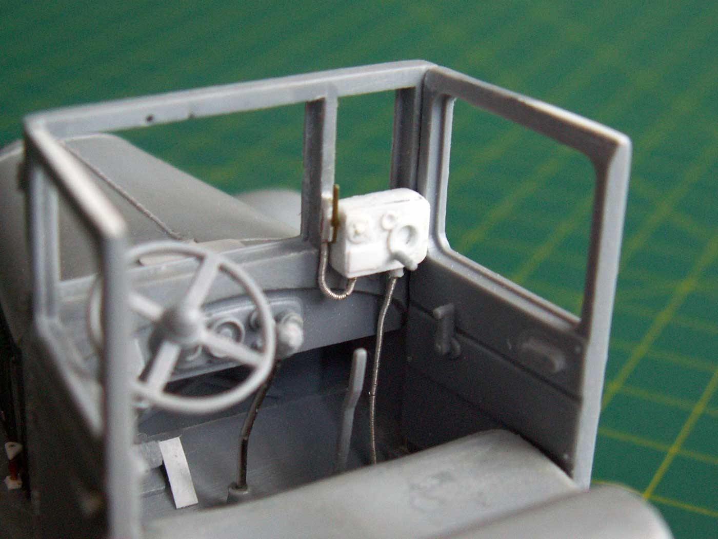Задняя часть с крыльями совсем не подходит для данного экземпляра. Крылья непонятной формы, что-то похожее на подрамник... Пришлось переделывать. Все крепилось к кабине. Сделаны бак с креплением, рейка механизма горизонтальной наводки, кронштейн запасного колеса и так, по мелочи... винтики, шаечки ))))