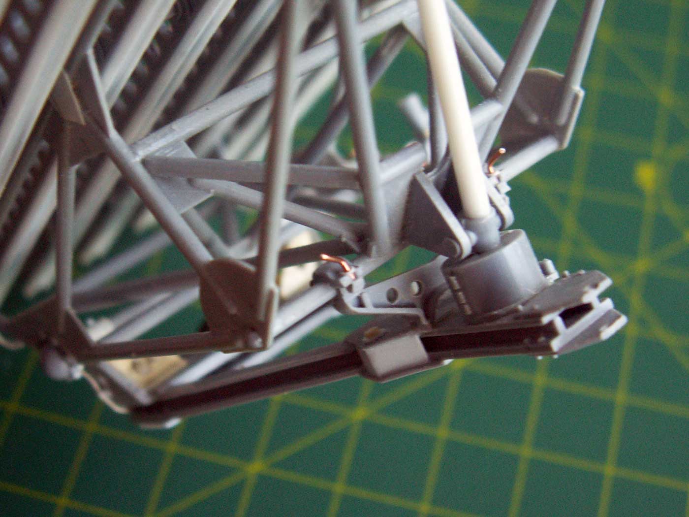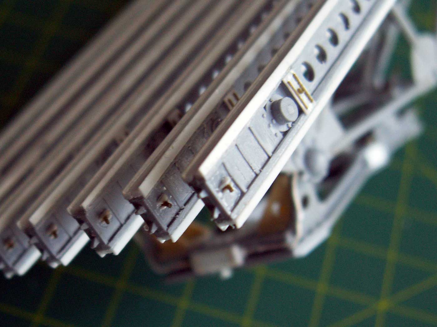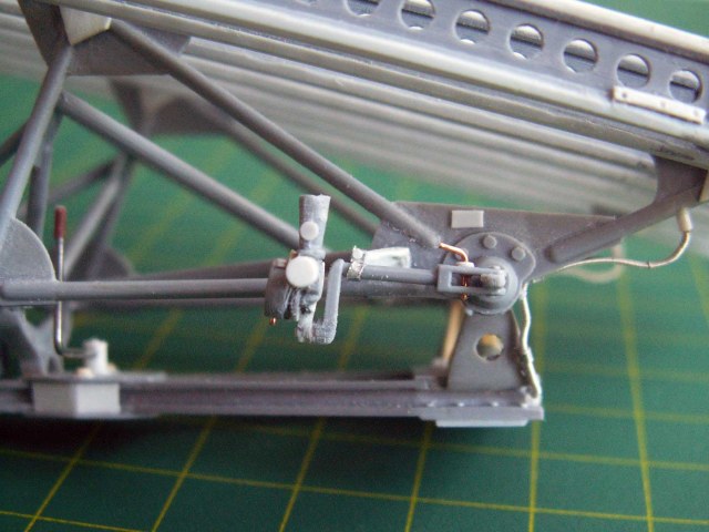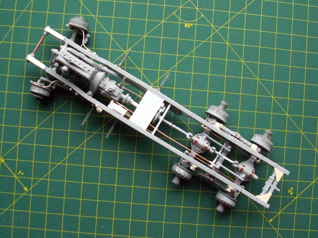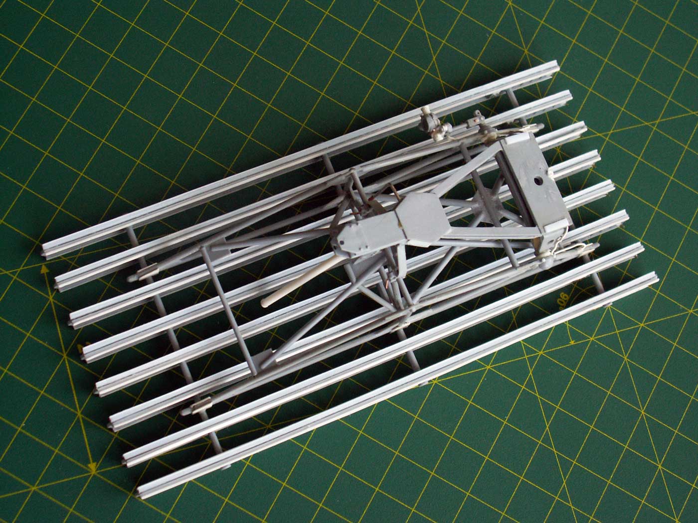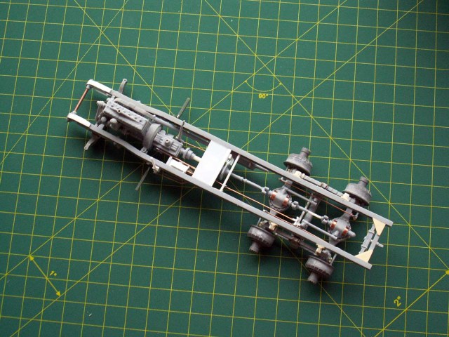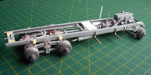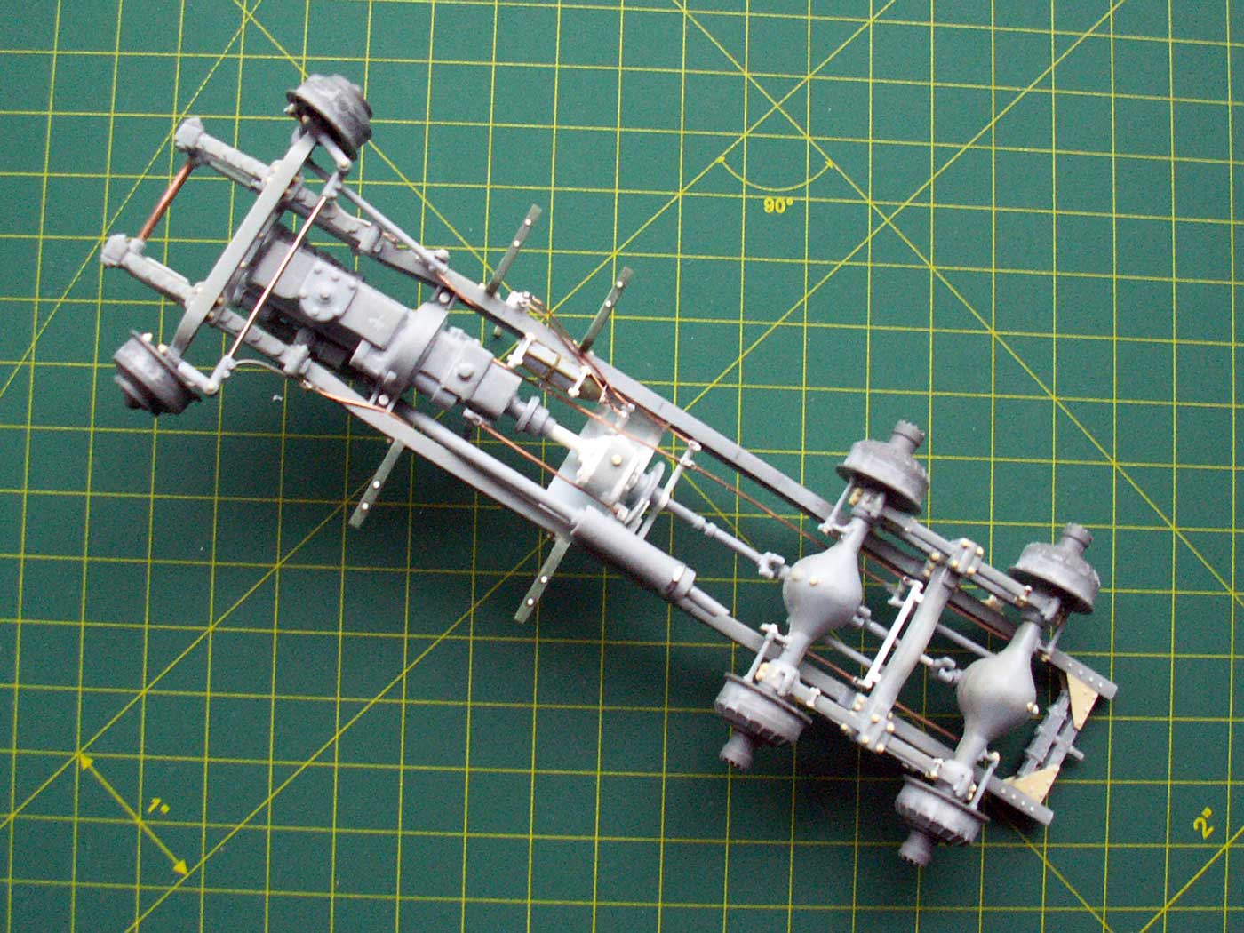 [JUSTIFY]- доработал заднюю тележку. Конечно в большей мере это украшательство, хотя и старался придерживаться фото. Тележка на прототипе изобилует стяжками, болтиками, стремянками и т.п., в модели все это практически отсутствует, плюс средняя ось не прямая, а с изгибом под вал, что в модели не учтено. Мосты тоже требуют доработки...
