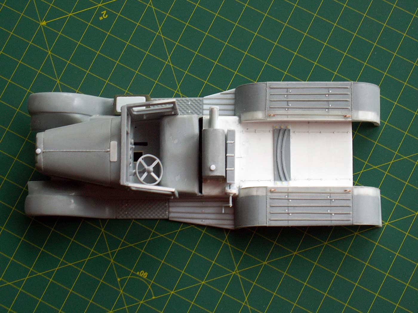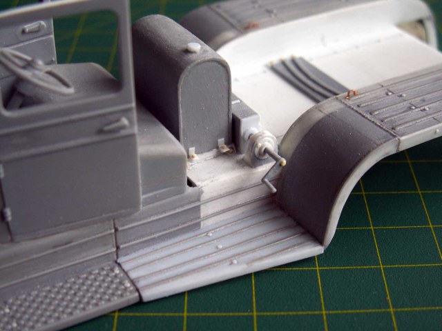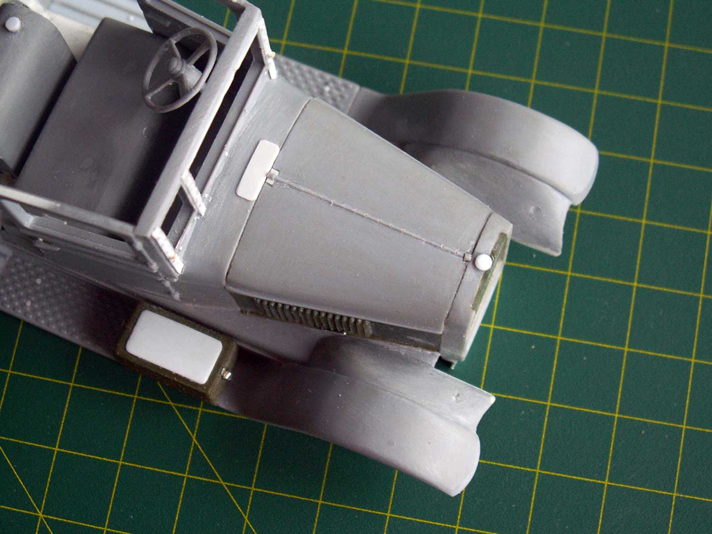 С верхом работа пока полностью не закончена. Надо кронштейны на передние крылья, фары и их кронштейн, механизм вертикальной наводки установки, крепеж створок капота, шанец, может еще что вспомнится.