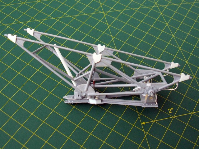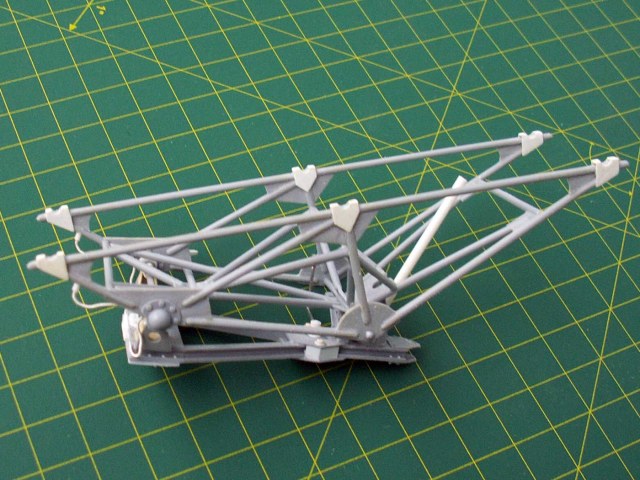 [JUSTIFY]Собрал поворотную платформу. Постарался привести к раннему виду, как на установке в Питере. Переделал рычаг стопора в походном положении, кронштейны крепления фермы, немного подкорректировал центральную часть, добавил распределительную коробку и всякие болтики.[/JUSTIFY]