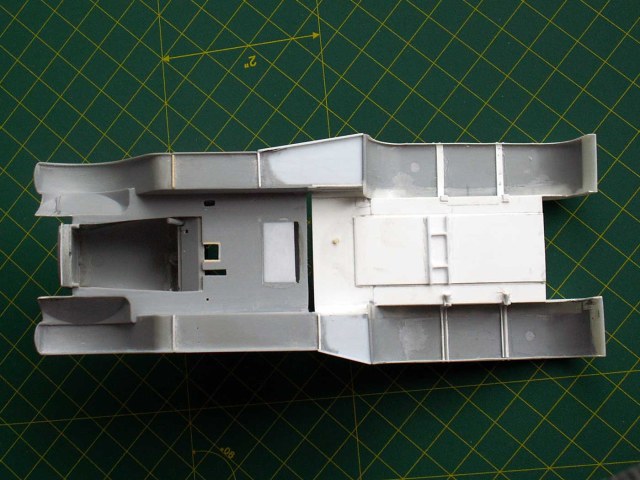 Задняя стенка кабины с крышей так же собраны отдельным блоком, для окраски интерьера. Сделал имитацию каркаса, листы на крышу, доработал заднюю стенку, переделал выштамповки