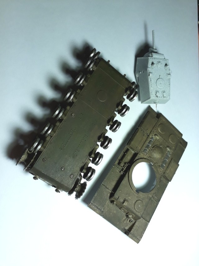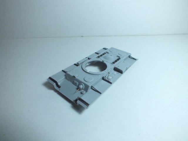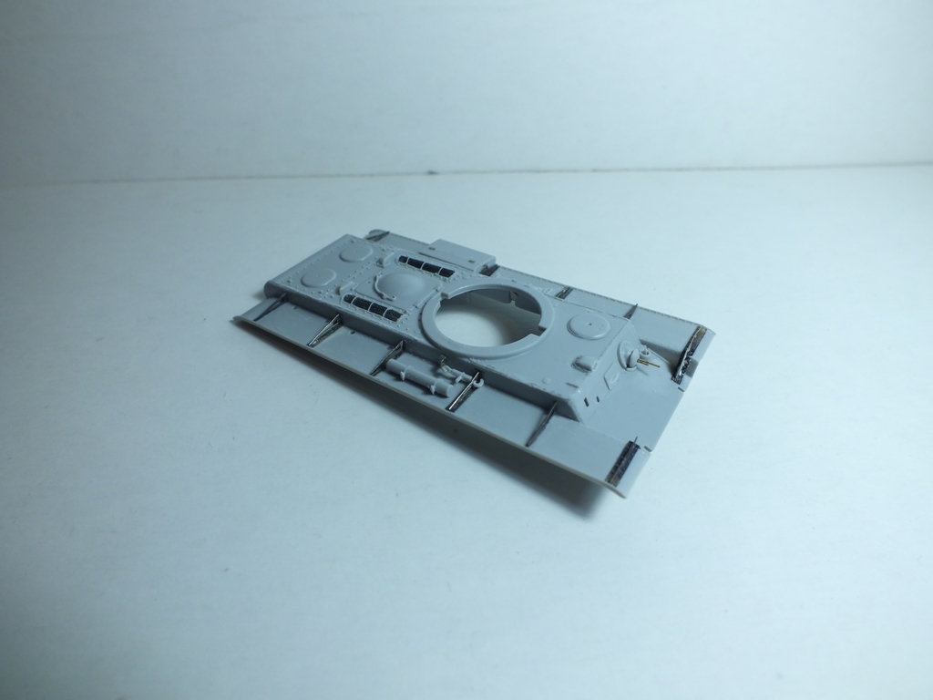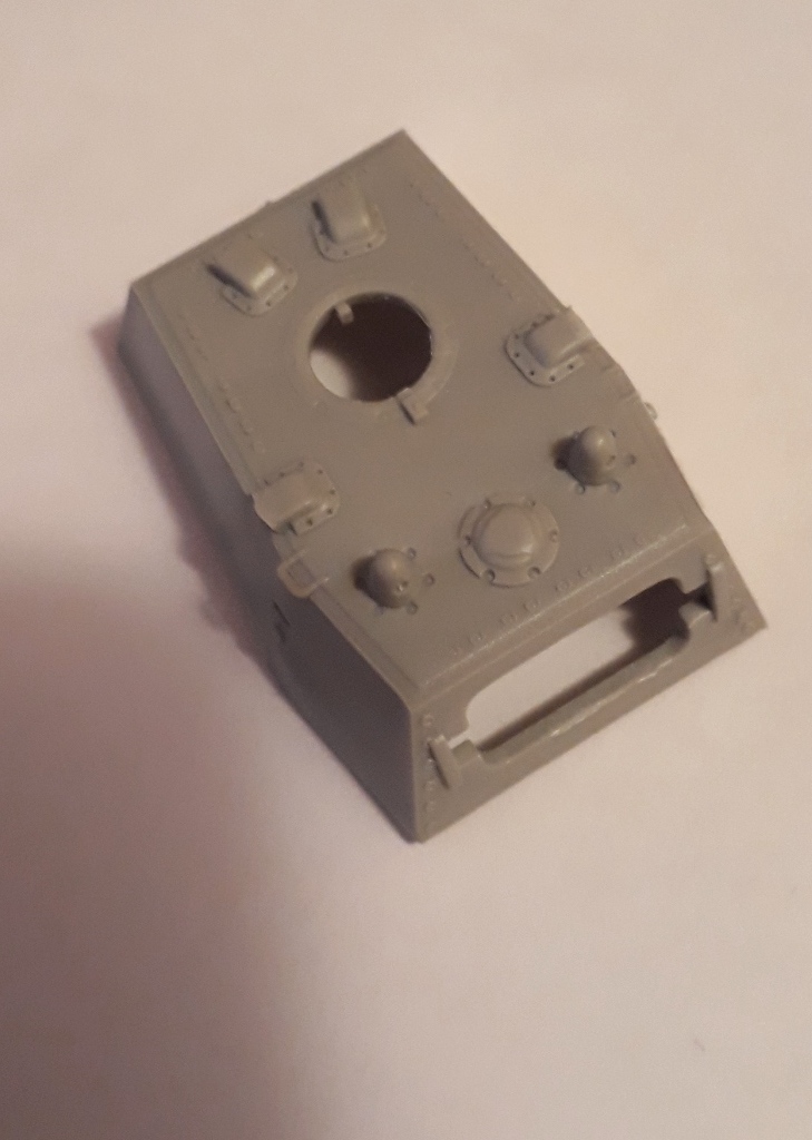 Выяснил что гужоны на башне были. Ну раз так, "прогужонил" башню заново и сделал сварные швы. Высверлил колпаки перископов, выдолбил залитые пластиком смотровые приборы башни. К счастью залило пластиком не все, а только бортовые. Заменил пулемет на Зедвал, вставил DVD в смотровые приборы (хотя этого и не видно). Сходимость все-таки на троечку у Трумптера. Шпатлевка понадобилась даже при установке орудия. Башня почти закончена. Осталось добавить поручни из проволоки, да возможно поправлю кое-что по гужонам.