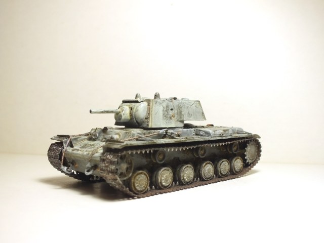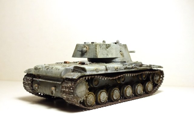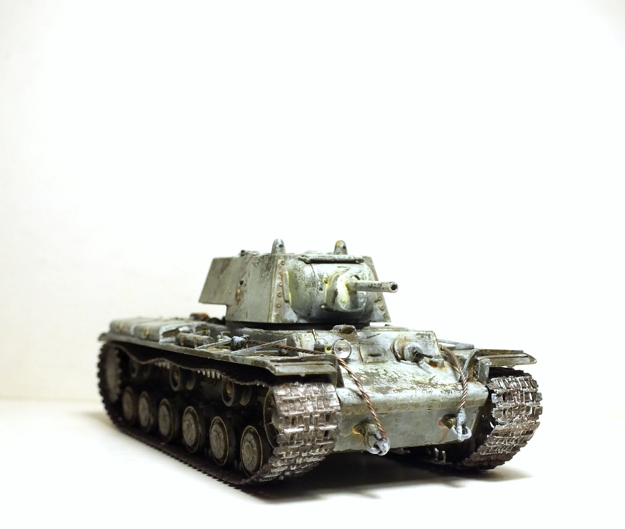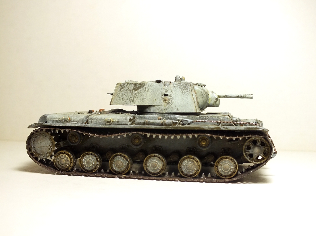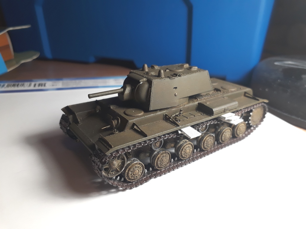 Ну собственно сборка завершена. Танк окрашен в базу кисточками. Намучился я с виниловыми гусеницами, по инструкции они клеятся обычным модельным клеем, однако на практике, даже суперклей не мог удержать гусеницы от разрыва. Они шли с диким натягом. Только используя фен, смог одеть их на ходовую и немного даже провис вышел. Однако это было непросто. Посмотрев на модель, решил что попробую сделать Клима в зимнике.