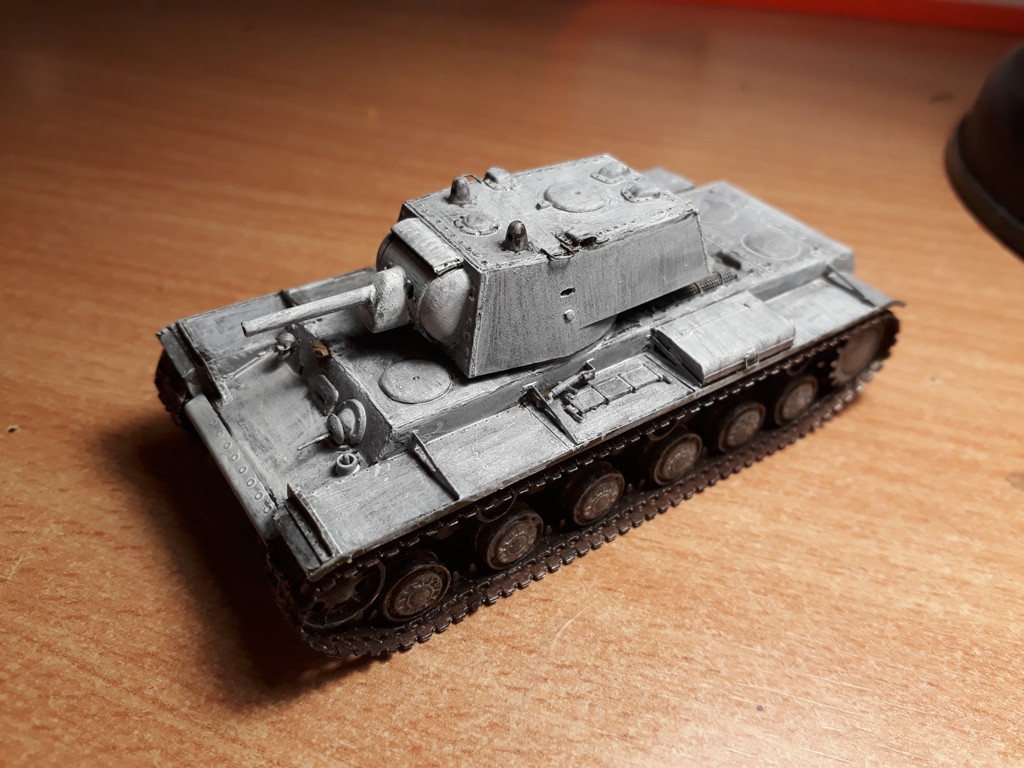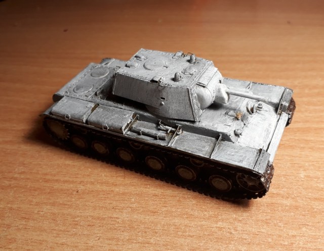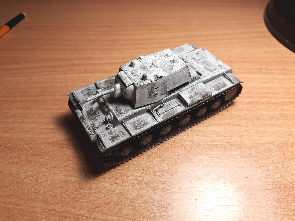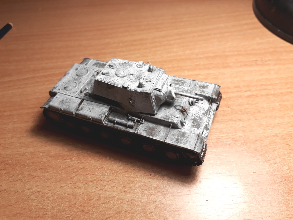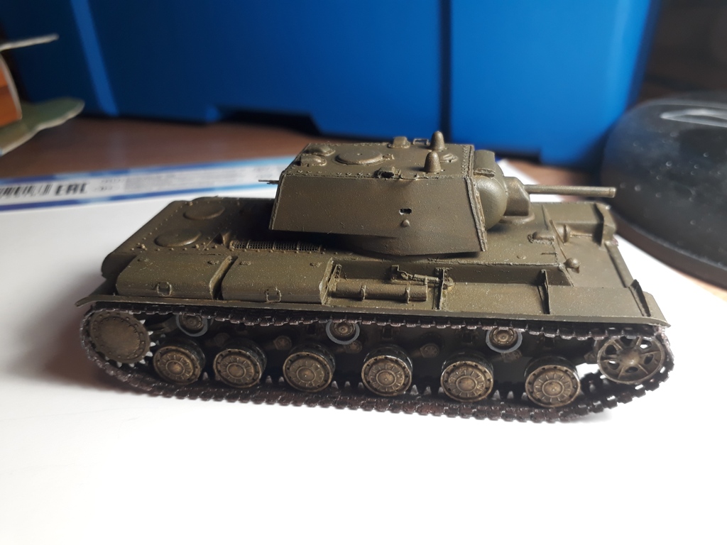 Ну собственно сборка завершена. Танк окрашен в базу кисточками. Намучился я с виниловыми гусеницами, по инструкции они клеятся обычным модельным клеем, однако на практике, даже суперклей не мог удержать гусеницы от разрыва. Они шли с диким натягом. Только используя фен, смог одеть их на ходовую и немного даже провис вышел. Однако это было непросто. Посмотрев на модель, решил что попробую сделать Клима в зимнике.