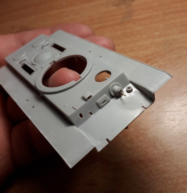 Гужогы га башне необваривались а просто срубалась шляпка. Логичнее было их показать вдавив в пластик например иглу от шприца 0'6мм. Сверлим лунку - туда 2х-компонентки - заподлицо - чуть позже давим иглой гужоны. В оконцовке сглаживаем наждачкой