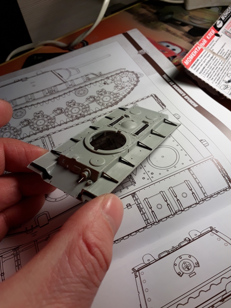 @JOY BOY написал:Гужогы га башне необваривались а просто срубалась шляпка. Логичнее было их показать вдавив в пластик например иглу от шприца 0'6мм. Сверлим лунку - туда 2х-компонентки - заподлицо - чуть позже давим иглой гужоны. В оконцовке сглаживаем наждачкой