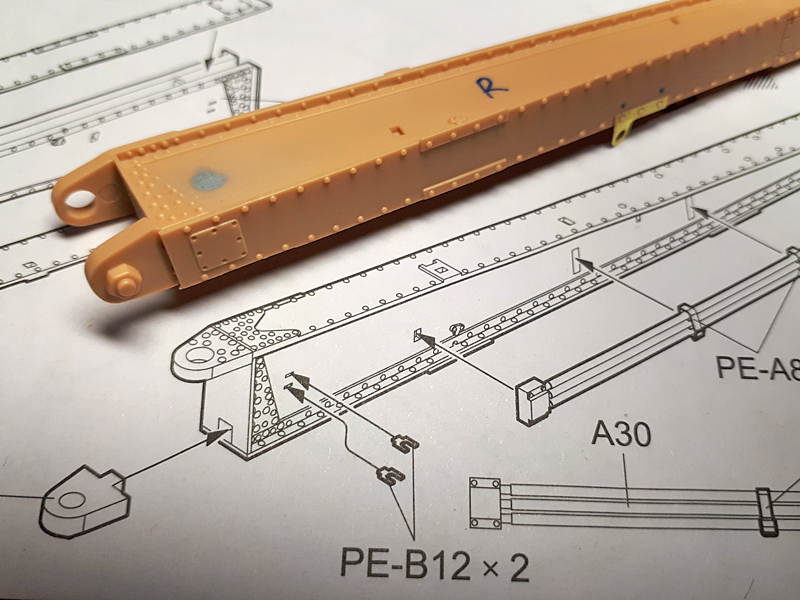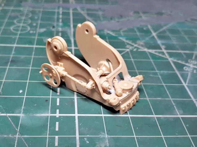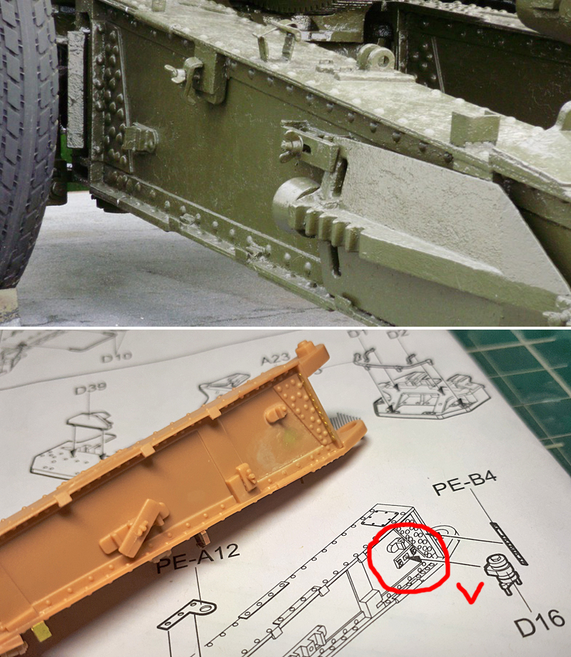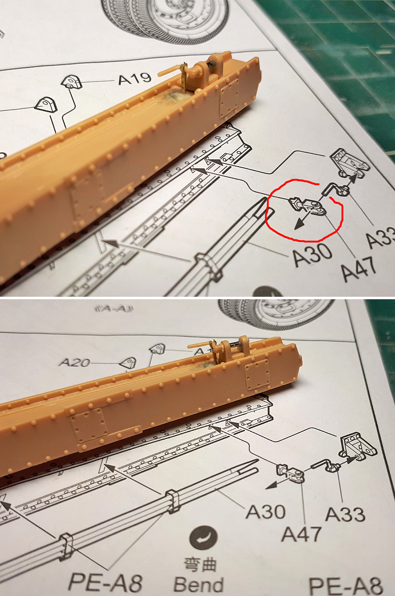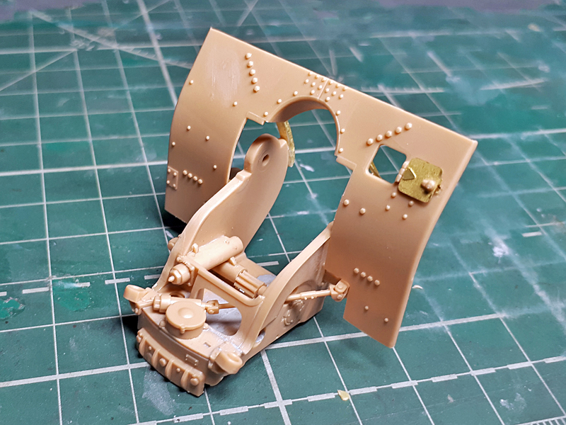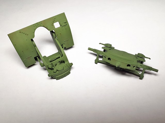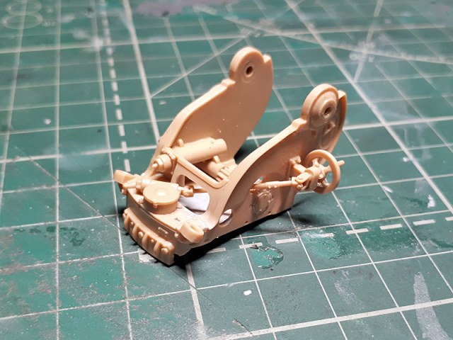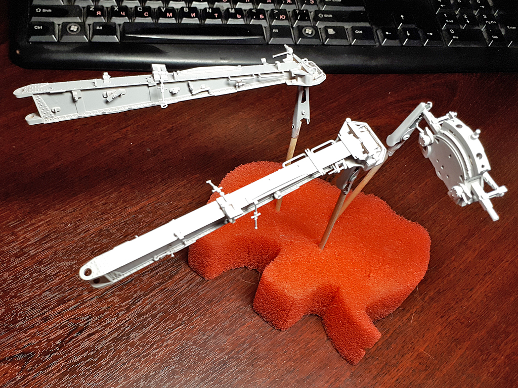 Судя по фотографиям оригинала, на деталях из набора ниже требуемого стоят цапфы установки механизмов в упоры люльки. Так как доработка потребует изготовления для них новых бронировок (а с жестью я работаю оч.плохо), решил оставить все как есть.