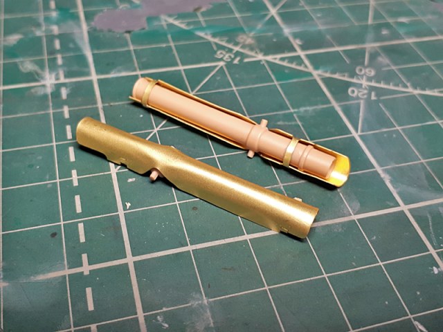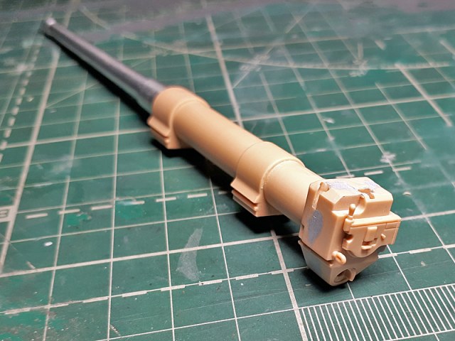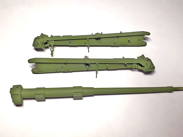 Сравнение деталей этих узлов из набора с фотографиями оригинала позволяет сказать, что сделаны они производителем модели по большей части достаточно копийно (сравнивал исключительно внешний вид, сопоставлением размеров не занимался). Поэтому, как уже говорил выше, собрал их "из коробки", за исключением ствола от Magic Models.