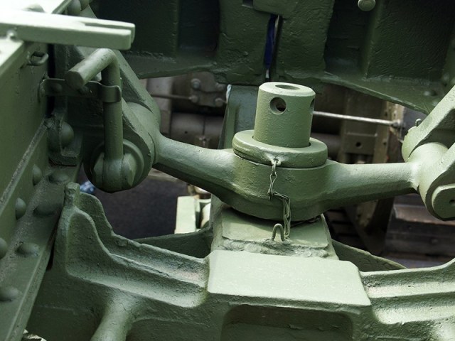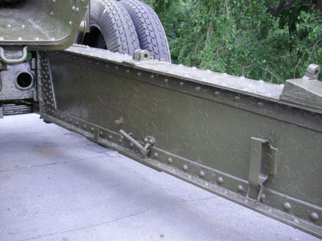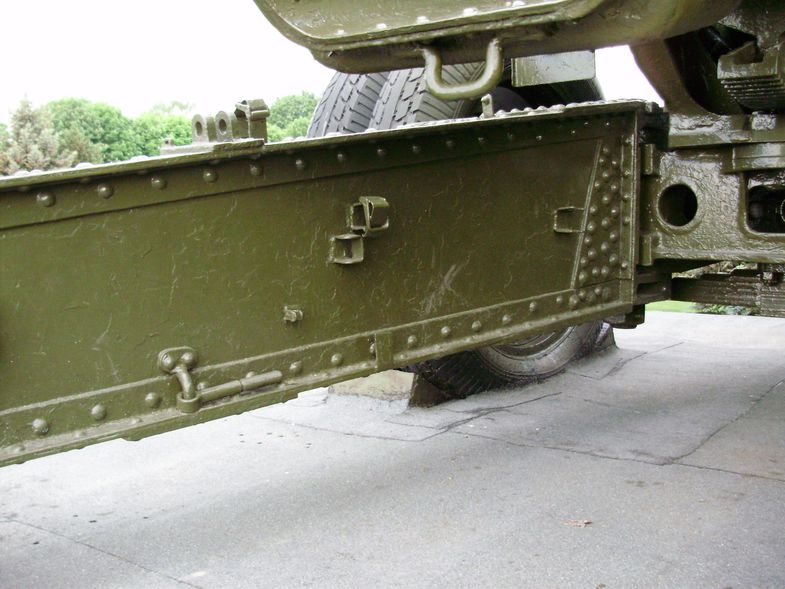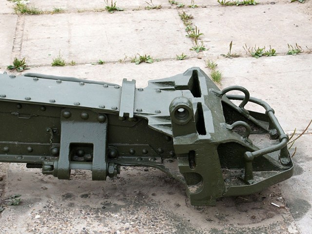 В продолжении работ, указанных в п.1 поста #13, установил на левую станину упоры РЕ-В 12. Что в них устанавливается не знаю, но на прототипе чуть поодаль стоит еще и замок (поставлю его позже, одновременно с установкой упоров лопат).