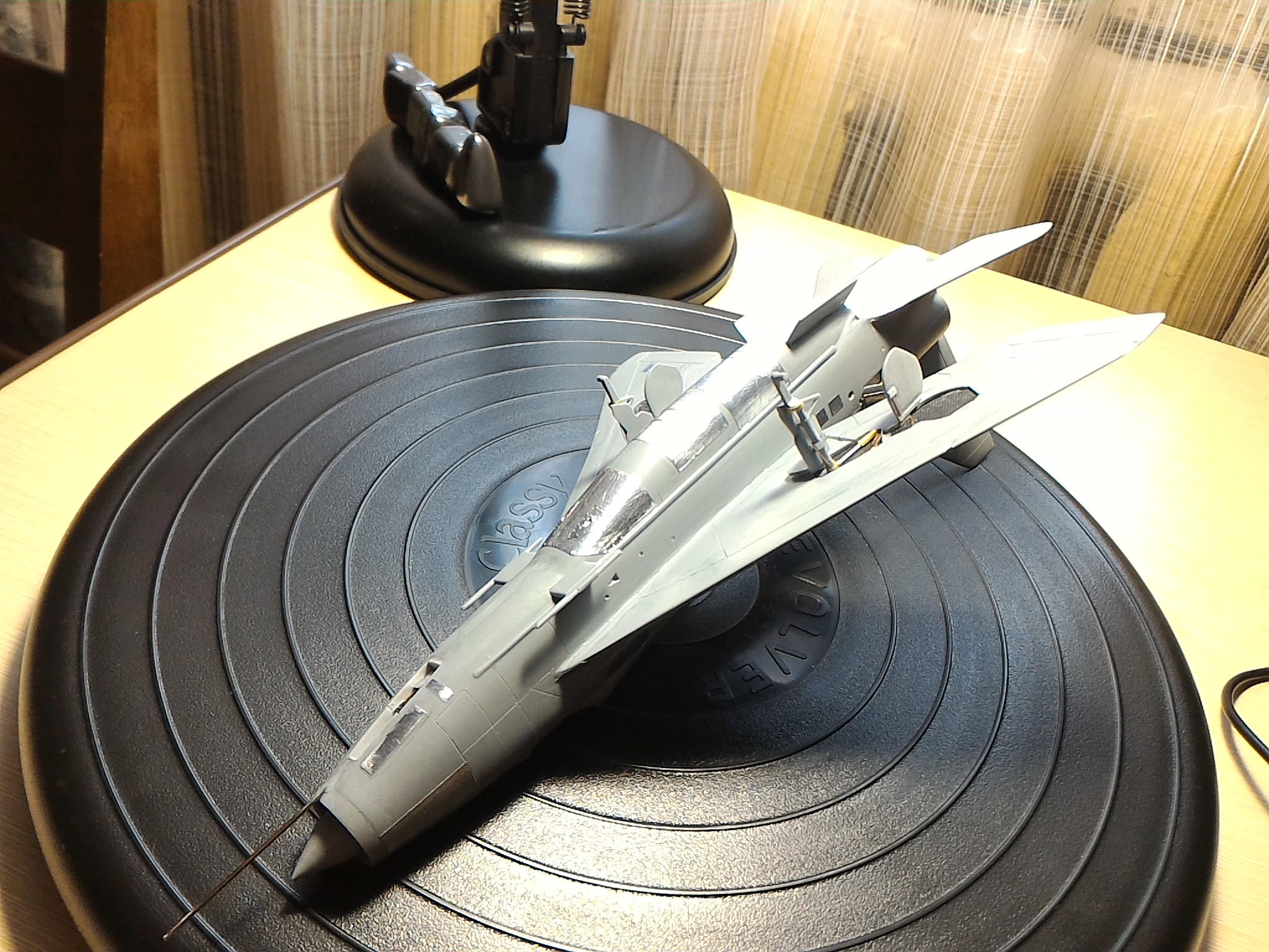 Витя, предлагаю на этом этапе (до покраски) примерять и подогнать фонарь кабины. Учитывая, что она состоит из двух частей и то, что ты подложил пластиночку за креслом пилота, могут быть нюансы