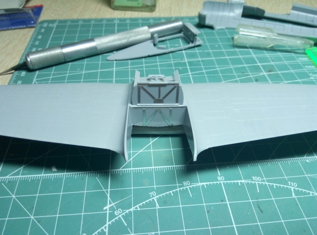 По кокпиту - видно в итоге будет место пилота, у стрелка почти ничего не видать в финале. Но в кабине есть что доработать. Обратите внимание на расшивку, пара линий там пропадает на крыльях.