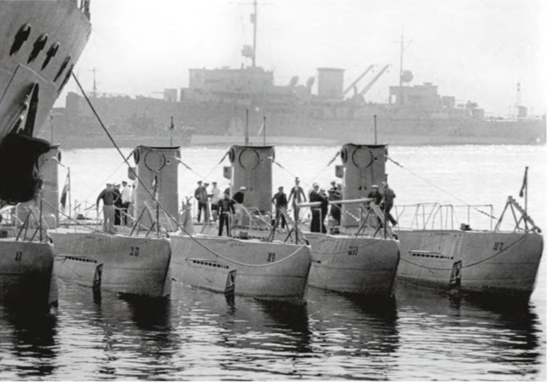 Три учебных лодки 22-ой флотилии,начало 1941 года. Слева направо U-14,Тип IIB, U-138,Тип IID и U-8,Тип IIB.